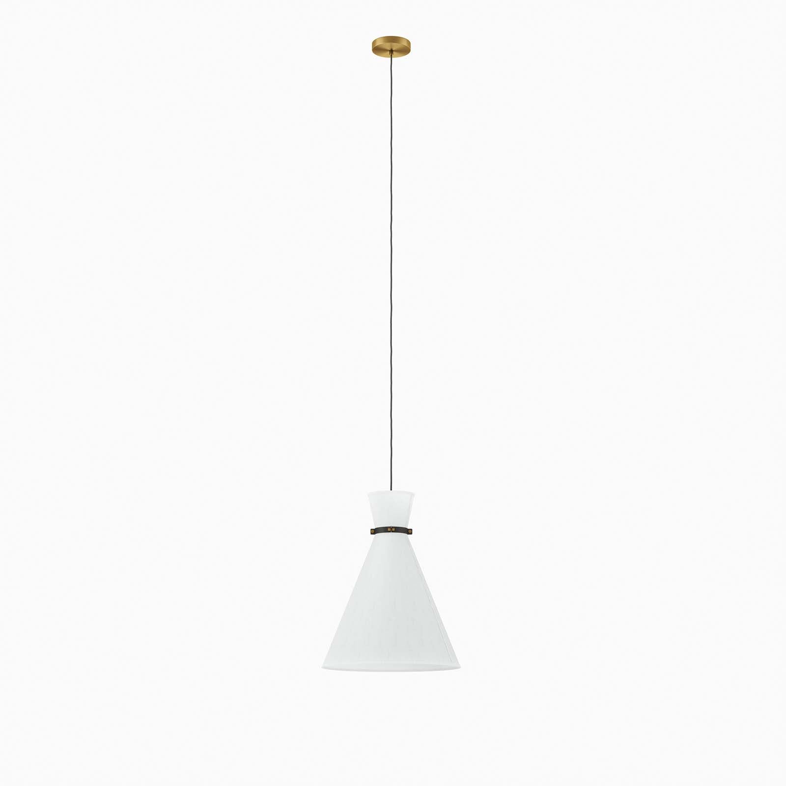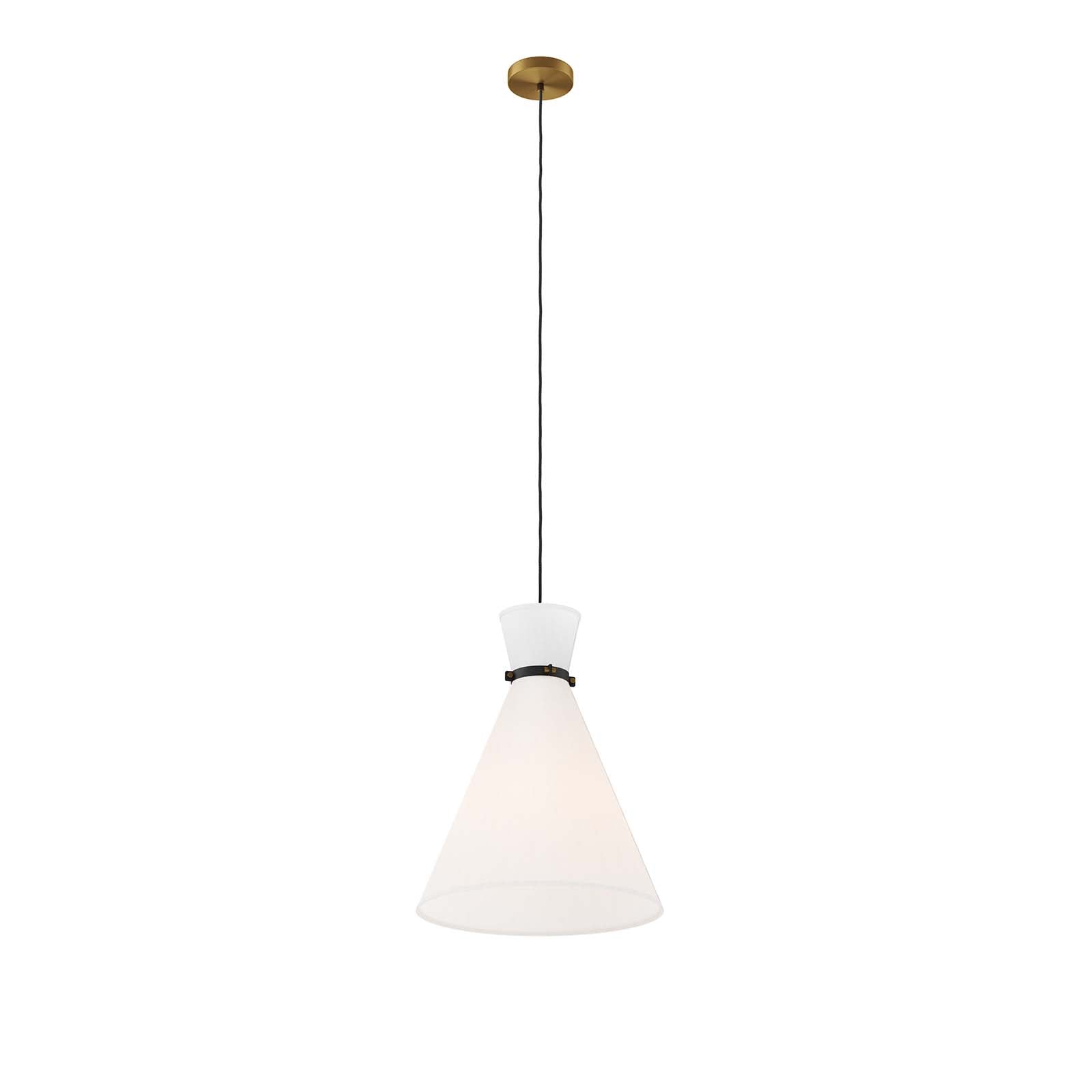 The Blythe Pendant Light radiates a warm glow. Designed to give purposeful task lighting in a bathroom, bedroom, dining room, kitchen, entryway, or other living space, this hanging light steals the show with its contemporary hourglass shape. The fabric shade features a matte black neck cinch. Compatible with sloped ceilings, this pendant light is suspended by a ceiling canopy and an adjustable fabric cable to accomodate a range of ceiling heights. This light fixture requires one E26 bulb 60W max or LED equivalent (not included). Damp rated for use in the bathroom. Professional installation required.