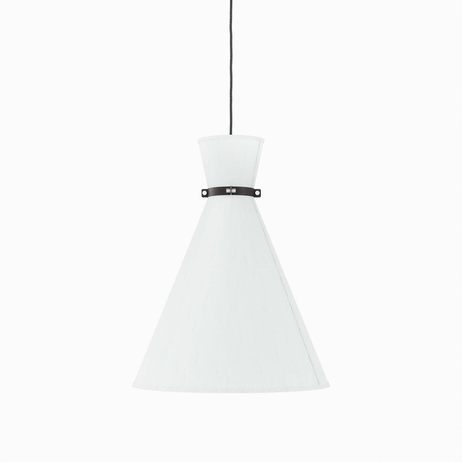 The Blythe 1-Light Pendant radiates a warm glow across its Dazeings. Designed to give purposeful task lighting in a bathroom, bedroom, dining room, kitchen, entryway, or other living space, this hanging light steals the show with its contemporary hourglass shape. The fabric shade features a matte black neck cinch. Compatible with sloped ceilings, this pendant light is suspended by a ceiling canopy and an adjustable fabric cable to accomodate a range of ceiling heights. This light fixture requires one E26 bulb 60W max or LED equivalent (not included). Damp rated for use in the bathroom. Professional installation required.