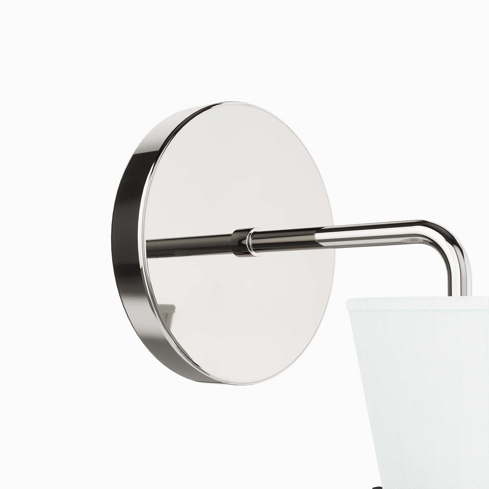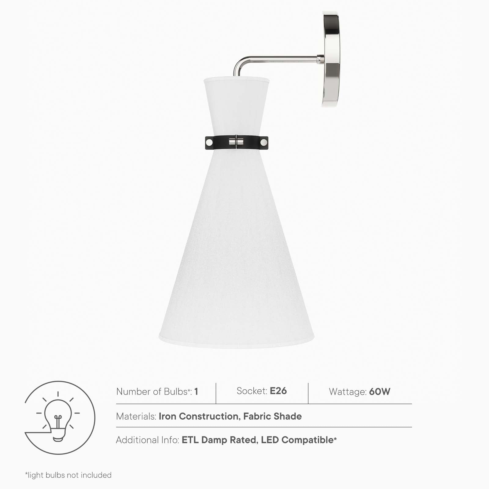 The Blythe Wall Sconce radiates a warm glow across. Designed to give purposeful ambient lighting in a bathroom, bedroom, dining room, hallway, entryway, or other living space, this wall light steals the show with its contemporary hourglass shape. The fabric shade features a matte black neck cinch and is mounted by a round backplate and simple bent arm. This wall lamp requires one E26 bulb 60W max or LED equivalent (not included). UL Listed for Damp Locations. Luminaires that are “Suitable for Damp Locations” are approved for areas that are regularly exposed to moisture and condensation. Professional installation required.