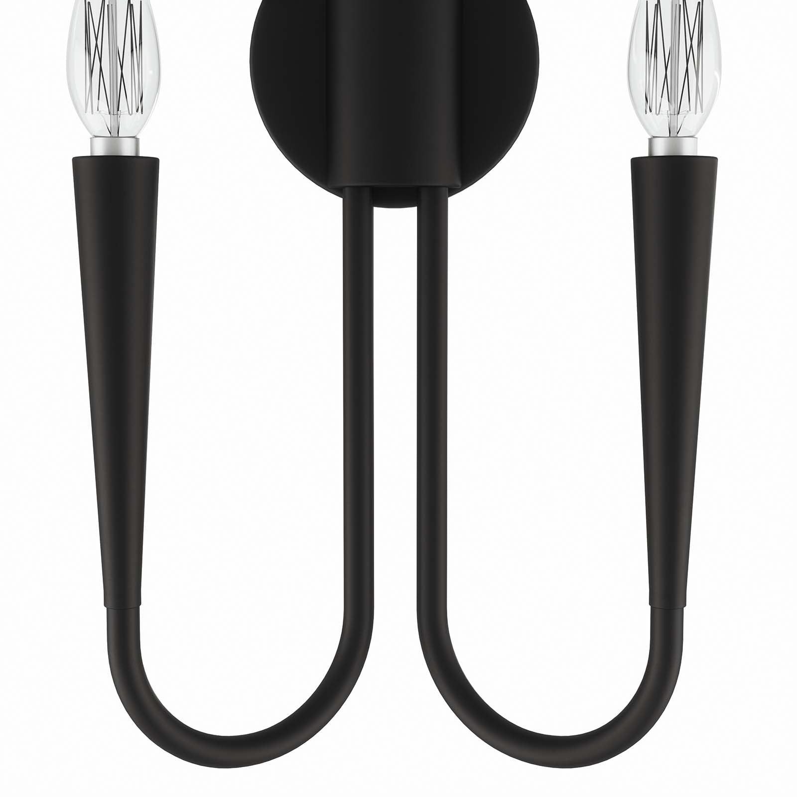 Sweeping lines and modern simplicity make the Brielle 2-Light Wall Sconce a sleek addition to a home or apartment. A beautiful light fixture in the dining room, entryway, hallway, bedroom, bathroom, or other living space, this wall light features two upturned metal arms that each hold a single exposed bulb (not included). This wall sconce is by a round backplate and cylindrical base. This wall light requires two E12 bulbs 60W max or LED equivalent (not included). UL Listed for Damp Locations. Luminaires that are “Suitable for Damp Locations” are approved for areas that are regularly exposed to moisture and condensation like the bathroom. Professional installation required.