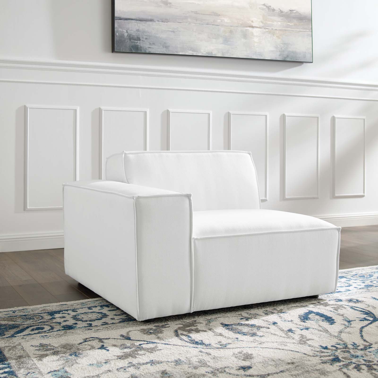 Create your custom living room and lounge area with the Eclat Left-Arm Chair. Appeals to minimalist elegance with a crisp design and broad lines accented with French piping details and polyester fabric upholstery. Dense foam padding and a pocket coil spring system in the cushions offer a luxe seating experience for your living room and lounge. The Eclat Living Room Sofa Chair is solidly constructed from plywood and wood with non-marking foot caps to protect flooring and connectors between modular pieces. Chair Weight Capacity: 440 lbs.