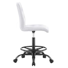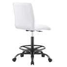 Etiquette presides over the properly styled Fjord Armless Drafting Chair. Modern and luxurious, this swivel drafting stool features deep biscuit tufting, durable vegan leather upholstery, and elegant piped trim for added finesse. This vegan leather drafting chair is height adjustable, features a 360º swivel, and comes outfitted with a matte black base with five dual-wheel nylon casters. Perfect for standing desks, drafting tables, reception desks, and more, this drafting-height office chair is complete with dense foam padding for lasting comfort throughout the workday. Assembly required. Weight Capacity: 287 lbs.
