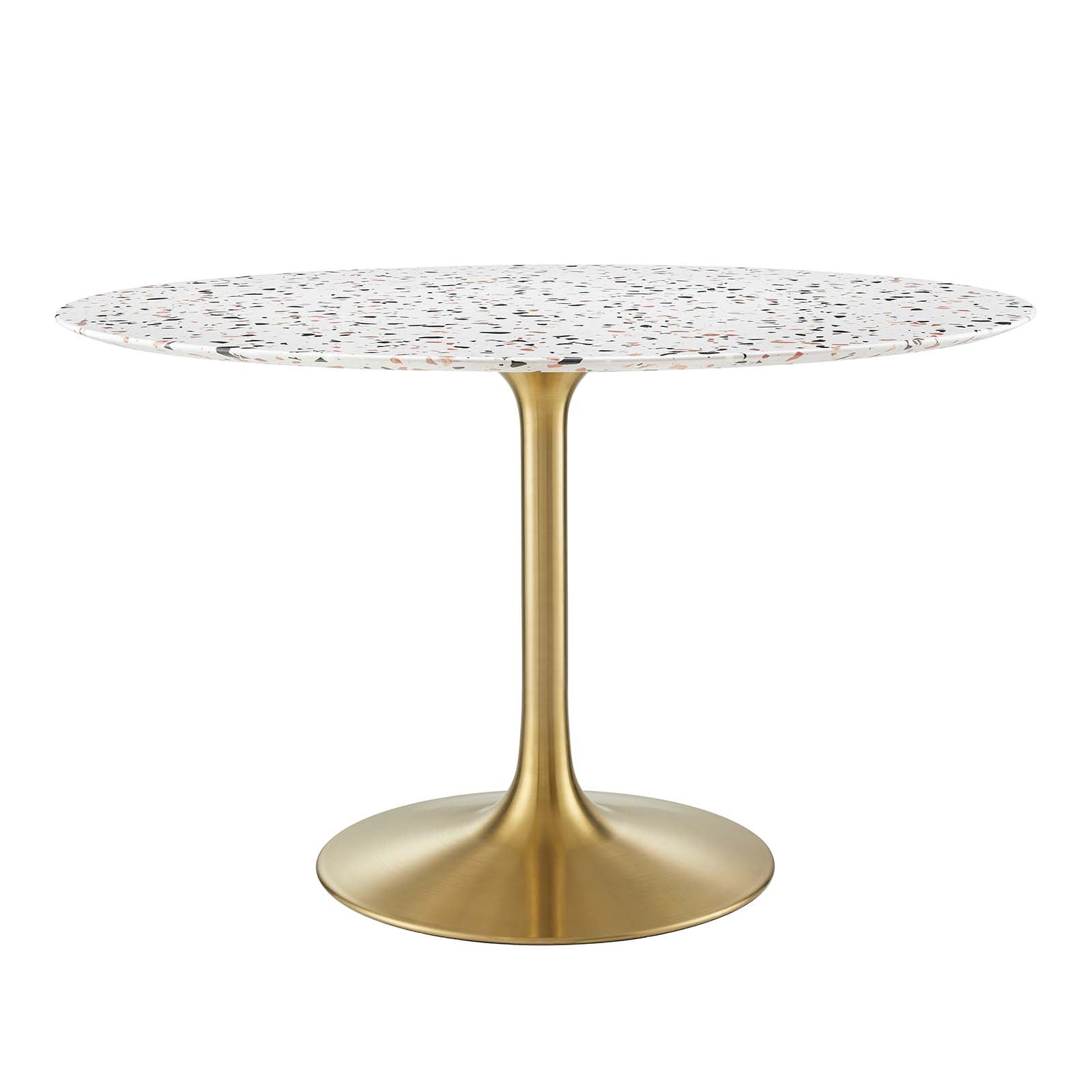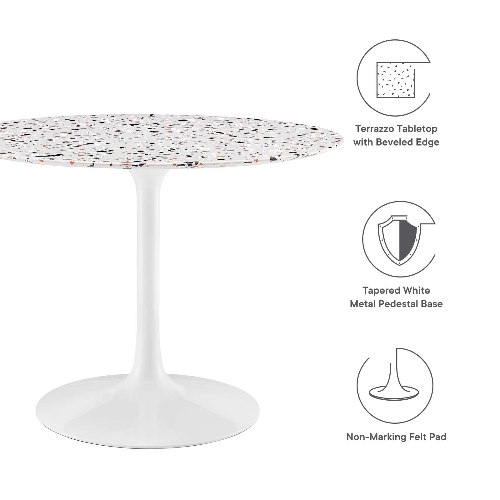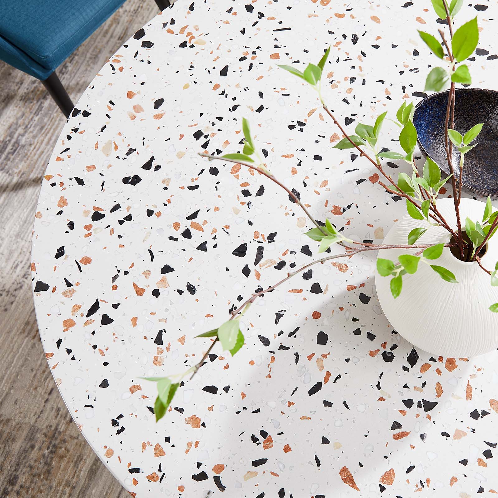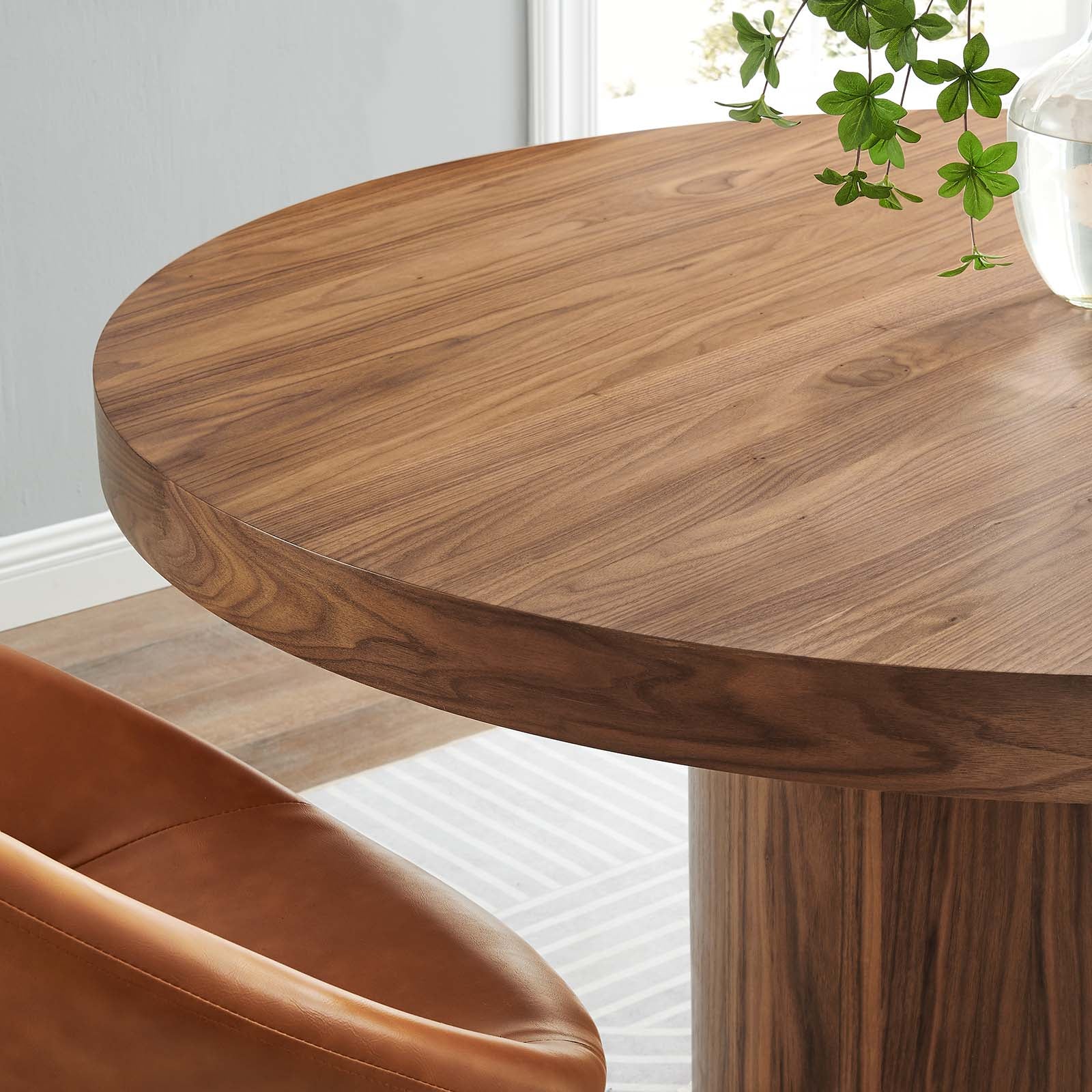 Gather around the Grove 47" Dining Table to enjoy good food and conversation with friends and loved ones. Making a striking statement in your dining space, this round table features a sturdy MDF construction with beautiful wood grain veneer to complement its bold yet simplistic modern design. This 47" dining table is complete with a tapered pedestal base and comfortably accommodates four dining chairs. Includes non-marking felt mat to protect flooring. Assembly required. Weight Capacity: 330 lbs.