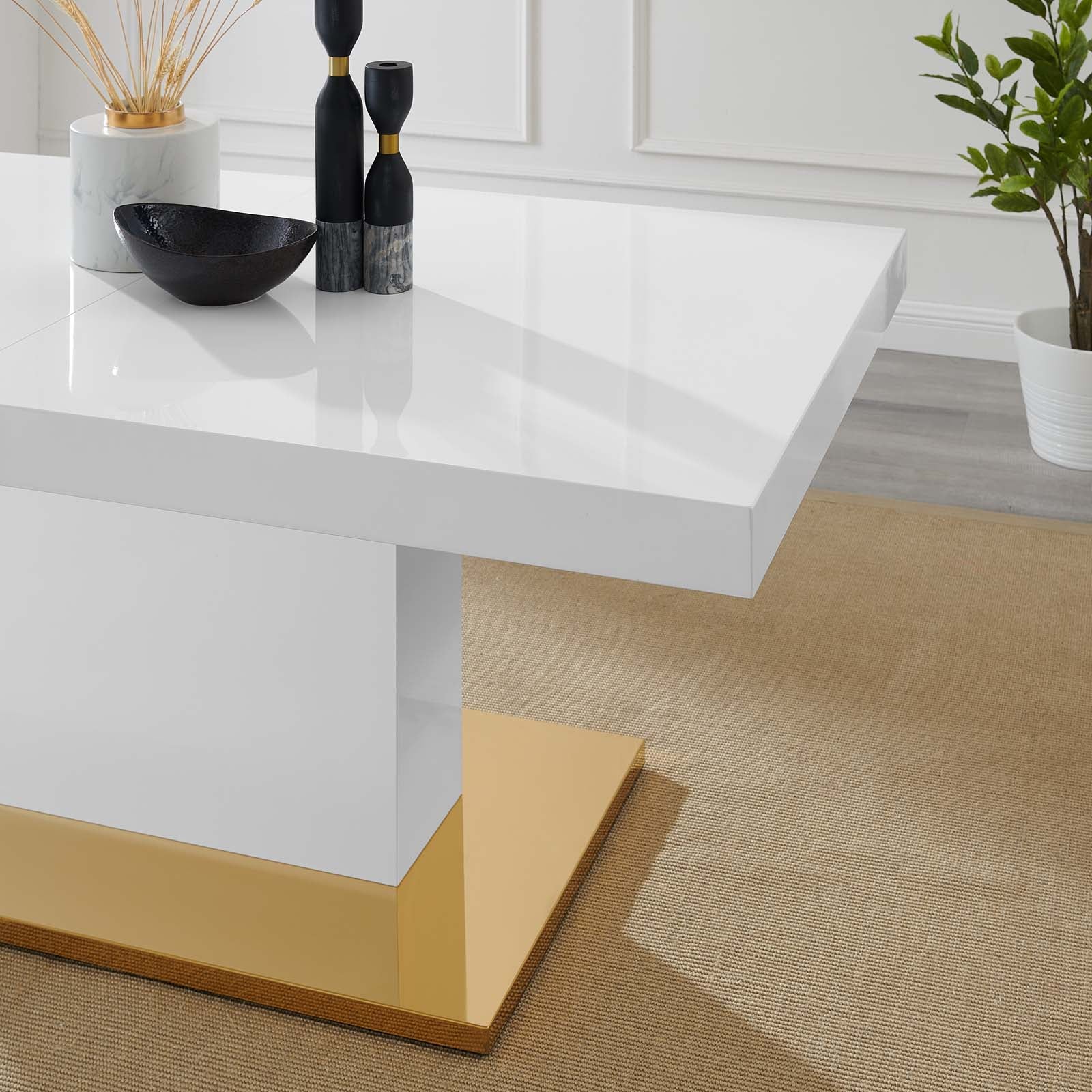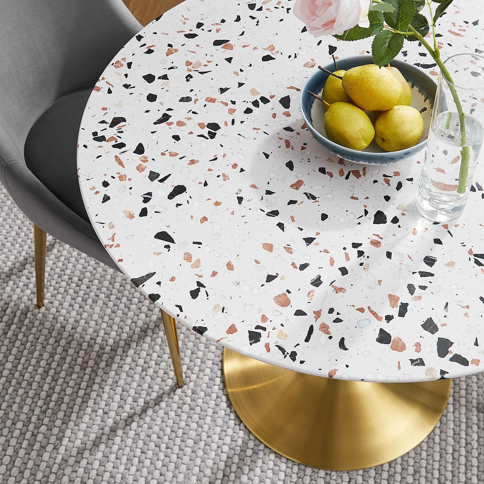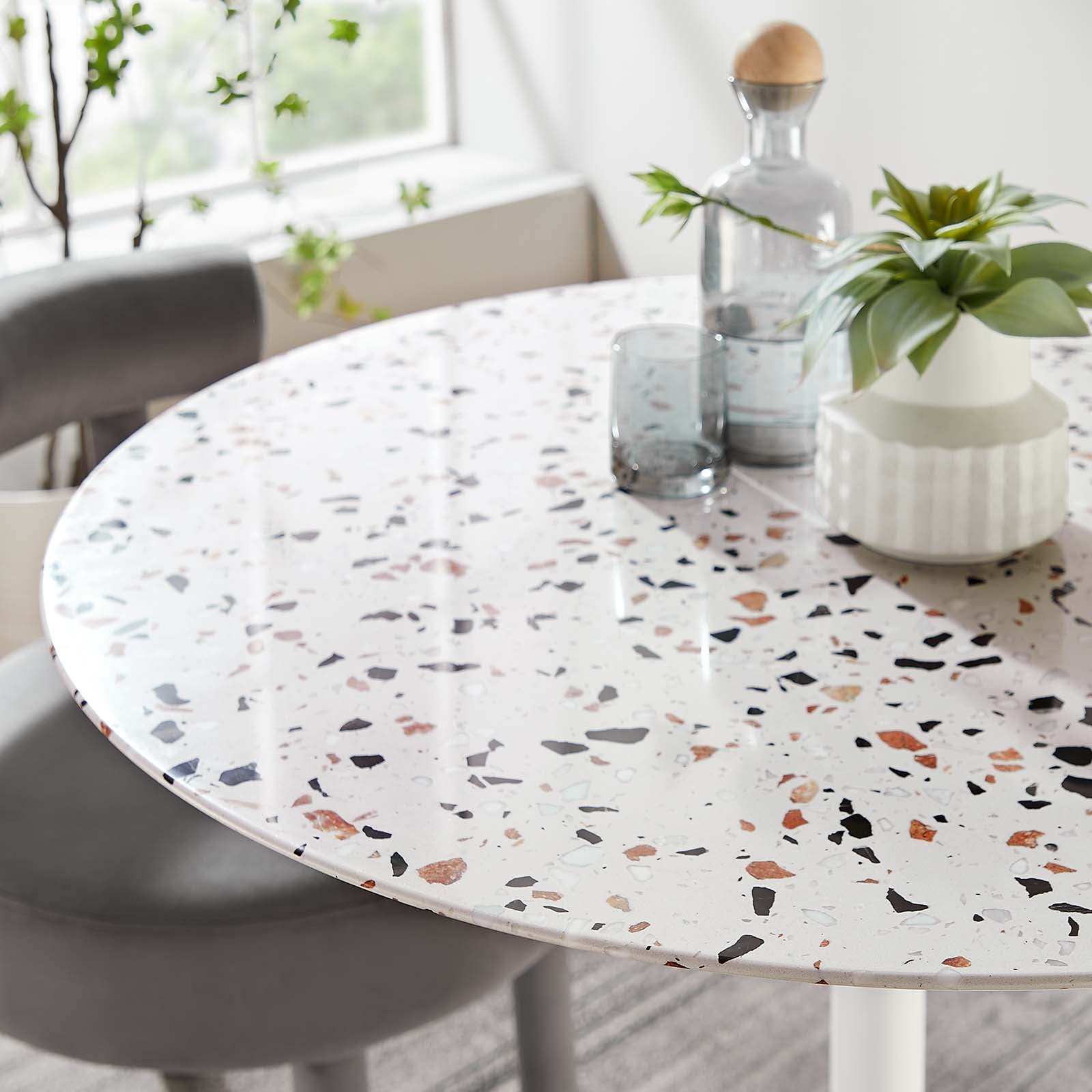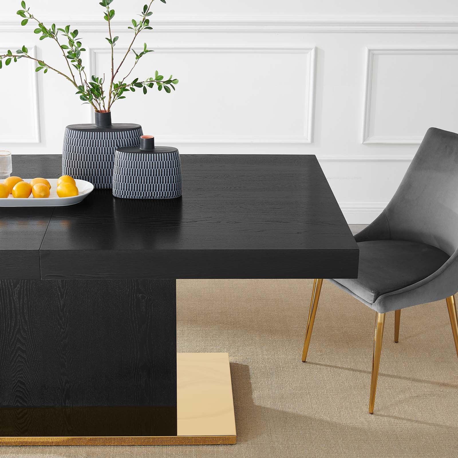 Gather around the Grove 47" Dining Table to enjoy good food and conversation with friends and loved ones. Making a striking statement in your dining space, this round table features a sturdy MDF construction with beautiful wood grain veneer to complement its bold yet simplistic modern design. This 47" dining table is complete with a tapered pedestal base and comfortably accommodates four dining chairs. Includes non-marking felt mat to protect flooring. Assembly required. Weight Capacity: 330 lbs.