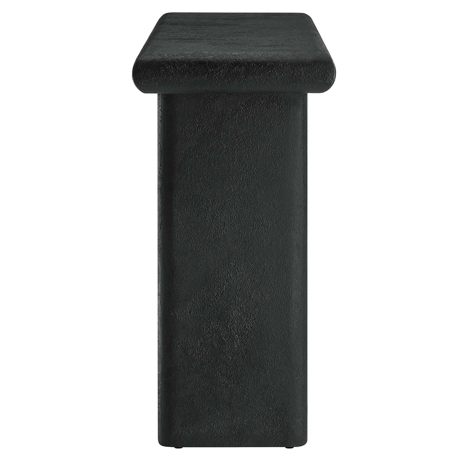 Step beyond the usual with the stylish Iris Console Table. Crafted from MDF and mango wood and topped with a textured cement concrete finish, lasting durability complements the eye-catching design. With sleek bullnose edges, this console table boasts gentle contours, offering a sophisticated canvas to display cherished memories or curated decors. Perfect for modern minimalist design schemes, this accent table effortlessly elevates your living room, entryway, hallway, home office or lounge area. Equipped with leveling, non-marking feet. Assembly Required. Weight capacity: 287 lbs