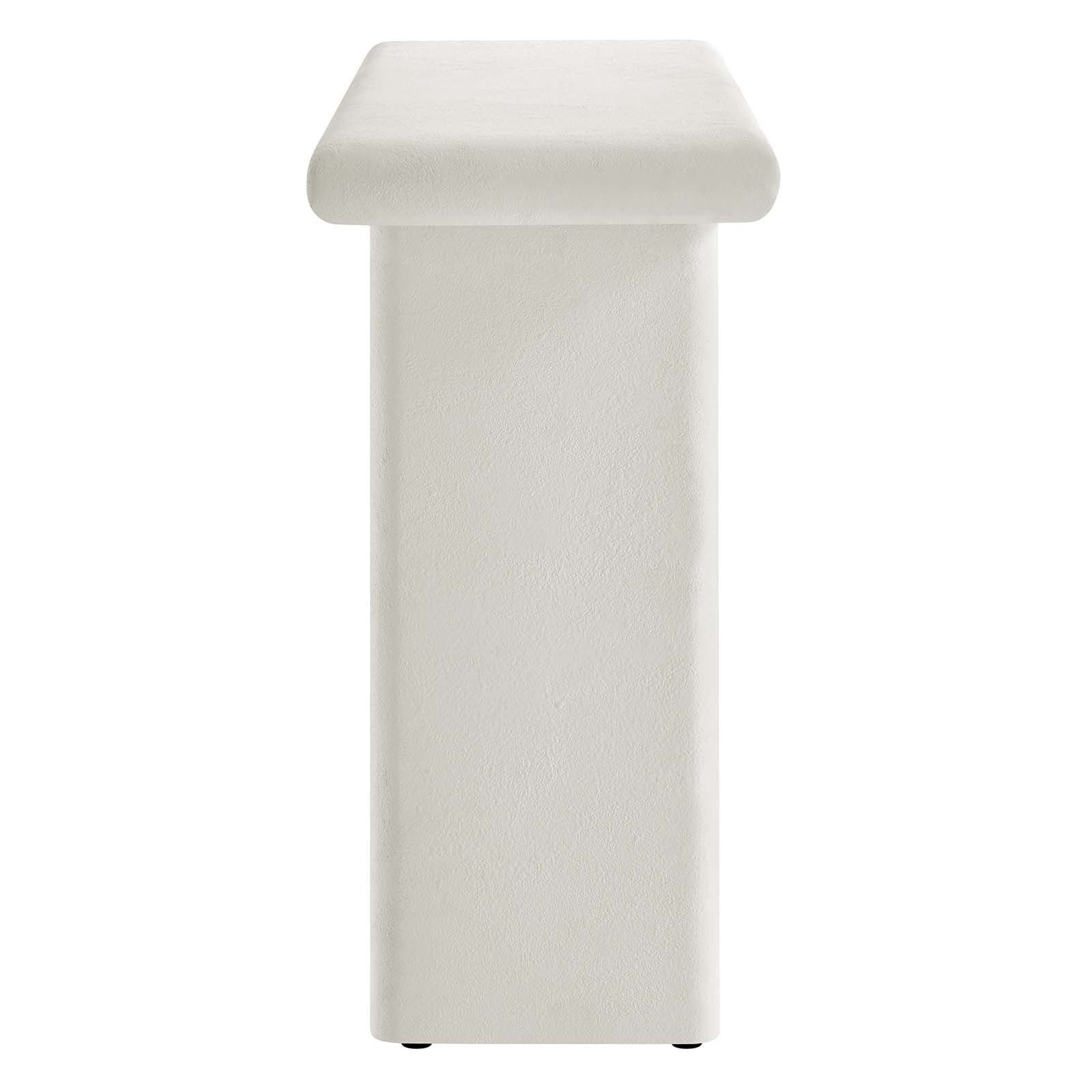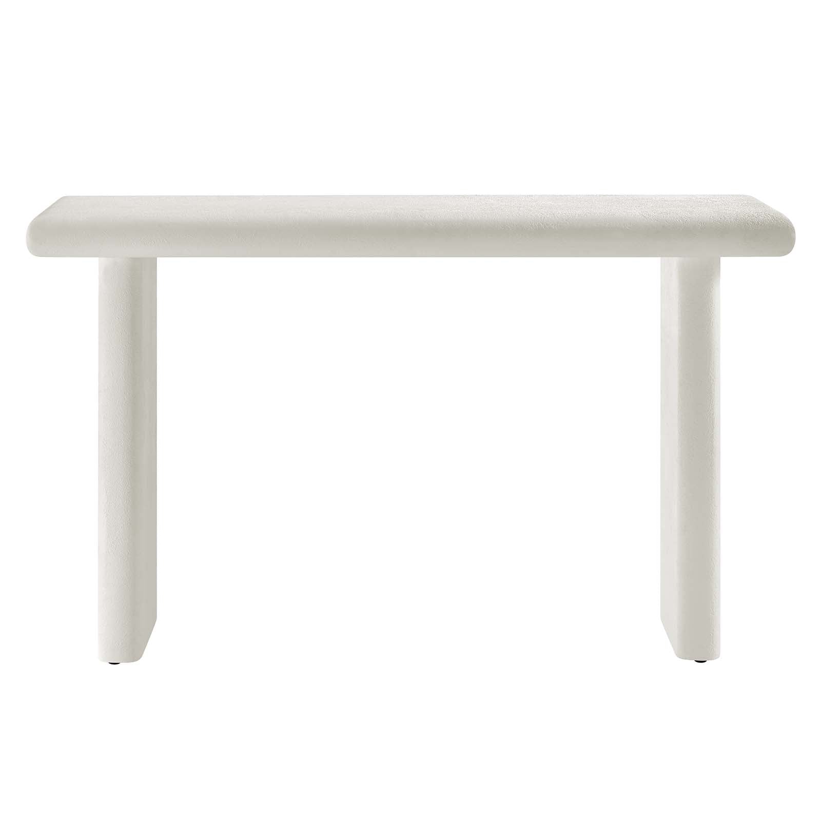 Step beyond the usual with the stylish Iris Console Table. Crafted from MDF and mango wood and topped with a textured cement concrete finish, lasting durability complements the eye-catching design. With sleek bullnose edges, this console table boasts gentle contours, offering a sophisticated canvas to display cherished memories or curated decors. Perfect for modern minimalist design schemes, this accent table effortlessly elevates your living room, entryway, hallway, home office or lounge area. Equipped with leveling, non-marking feet. Assembly Required. Weight capacity: 287 lbs