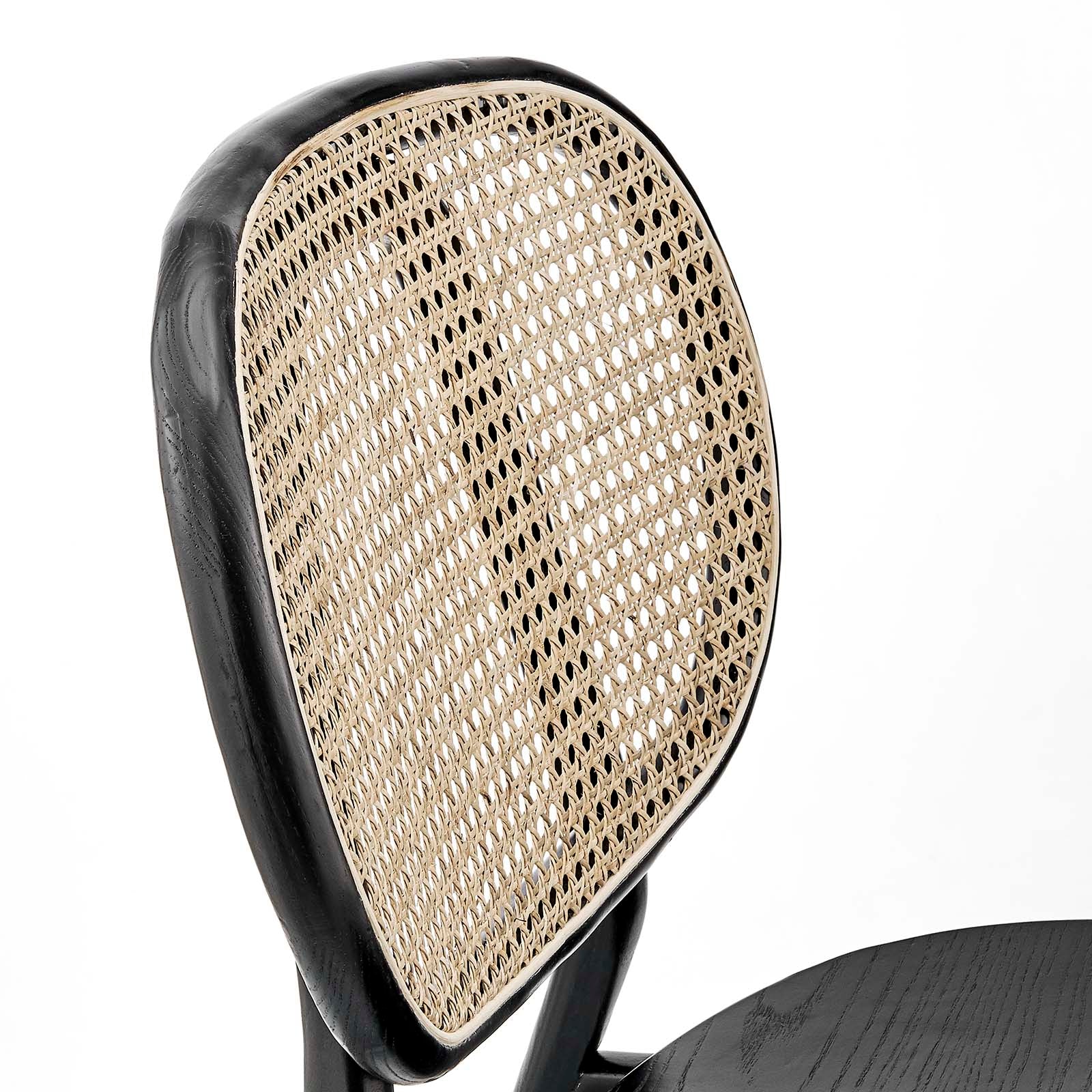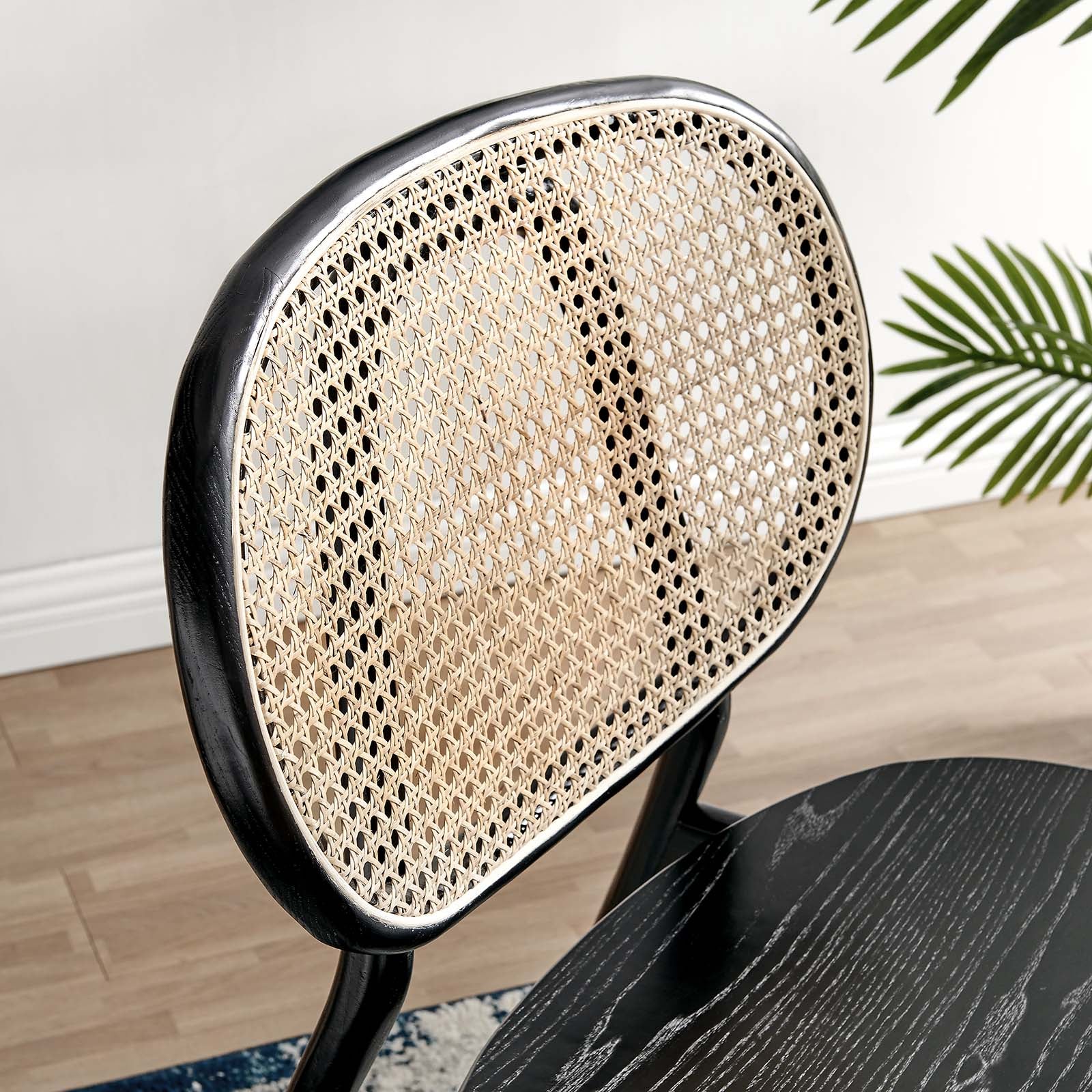 Inspiring the smell of freshly brewed coffee and warm pastries in your home, the Jardine Wood Dining Chair transports you to a morning spent in a cozy cafe with its modern farmhouse style and coastal charm. Featuring a rounded frame and airy design with a woven rattan cane detail, this dining chair is crafted with a solid elm wood frame and rests atop non-marking foot caps to protect your flooring. This wood chair is a versatile choice for the modern home making a statement in the dining room or as an accent chair in the living room, office, entryway, or other seating area. Weight Capacity: 330 lbs.