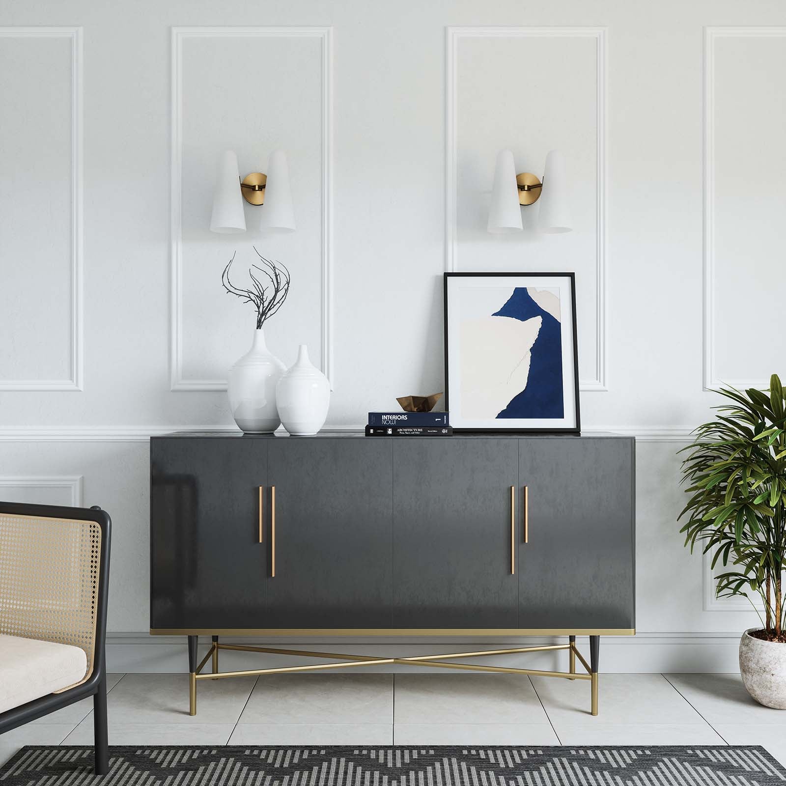 The Juniper Wall Sconce updates a living space, bedroom, dining room, bathroom, hallway, entryway, or office with minimalist sleekness that makes a modern statement. Offering a warm glow through its slim glass cone shades, this wall light is mounted to the wall by a round backplate and requires two E26 bulbs 60W max or LED equivalent (not included). ETL Listed for Damp Locations. Luminaires that are “Suitable for Damp Locations” are approved for areas that are regularly exposed to moisture and condensation. Professional installation required.