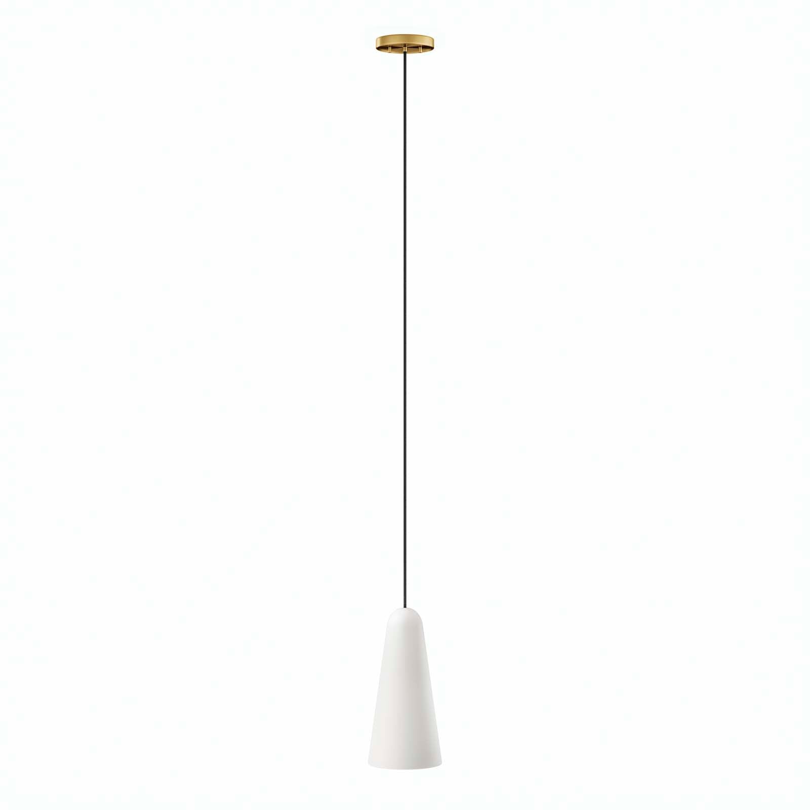 The Juniper 1-Light Pendant updates a living space, bedroom, kitchen, dining room, bathroom, or office with minimalist sleekness that makes a modern statement. Compatible with sloped ceilings, this pendant light is suspended by a ceiling canopy and an adjustable fabric cable to accomodate a range of ceiling heights. Offering a warm glow through its slim glass cone shade, this hanging light requires one E26 bulb 60W max or LED equivalent (not included). Damp rated for use in the bathroom. Professional installation required.