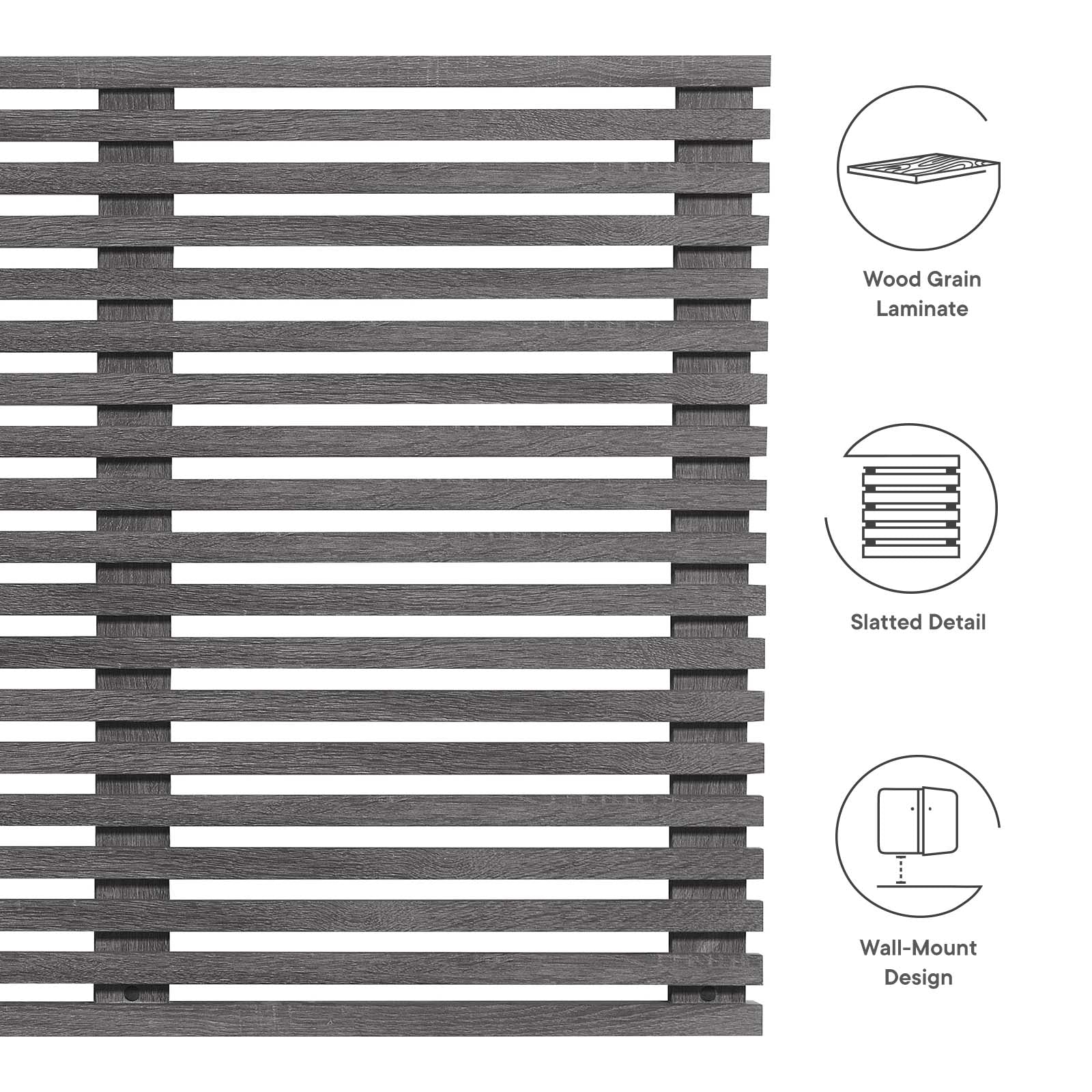 Tap into mid-century aesthetics with the Juno Wall-Mount King Headboard. With slatted detail commanding a presence in a Fjordary bedroom or guest bedroom, this king size headboard is a collection of panels that feature durable particleboard frames with smooth wood grain laminate and mount directly to the wall for added stability at your desired height.