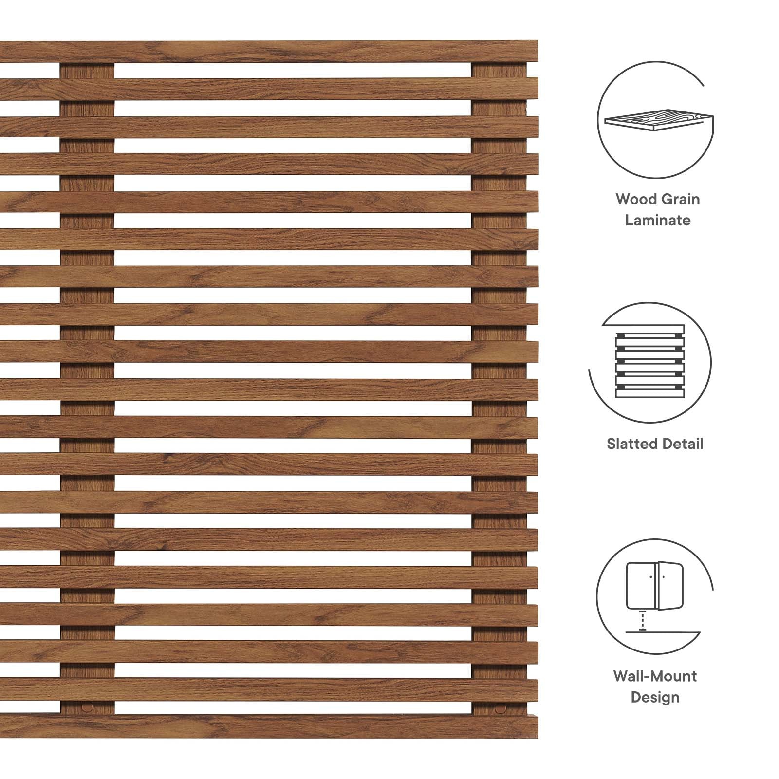 Tap into mid-century aesthetics with the Juno Wall-Mount King Headboard. With slatted detail commanding a presence in a Fjordary bedroom or guest bedroom, this king size headboard is a collection of panels that feature durable particleboard frames with smooth wood grain laminate and mount directly to the wall for added stability at your desired height.