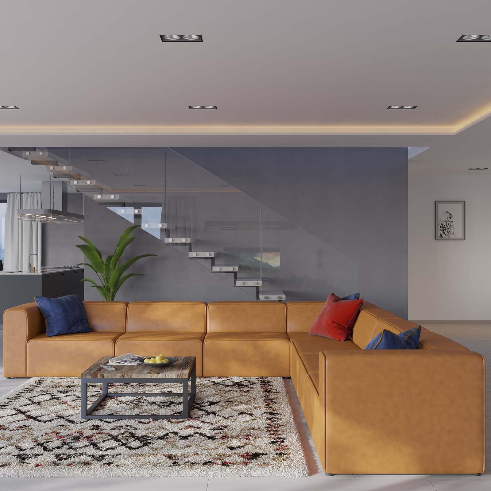 Moda 7-Seater Corner Sectional in Tan Vegan Leather