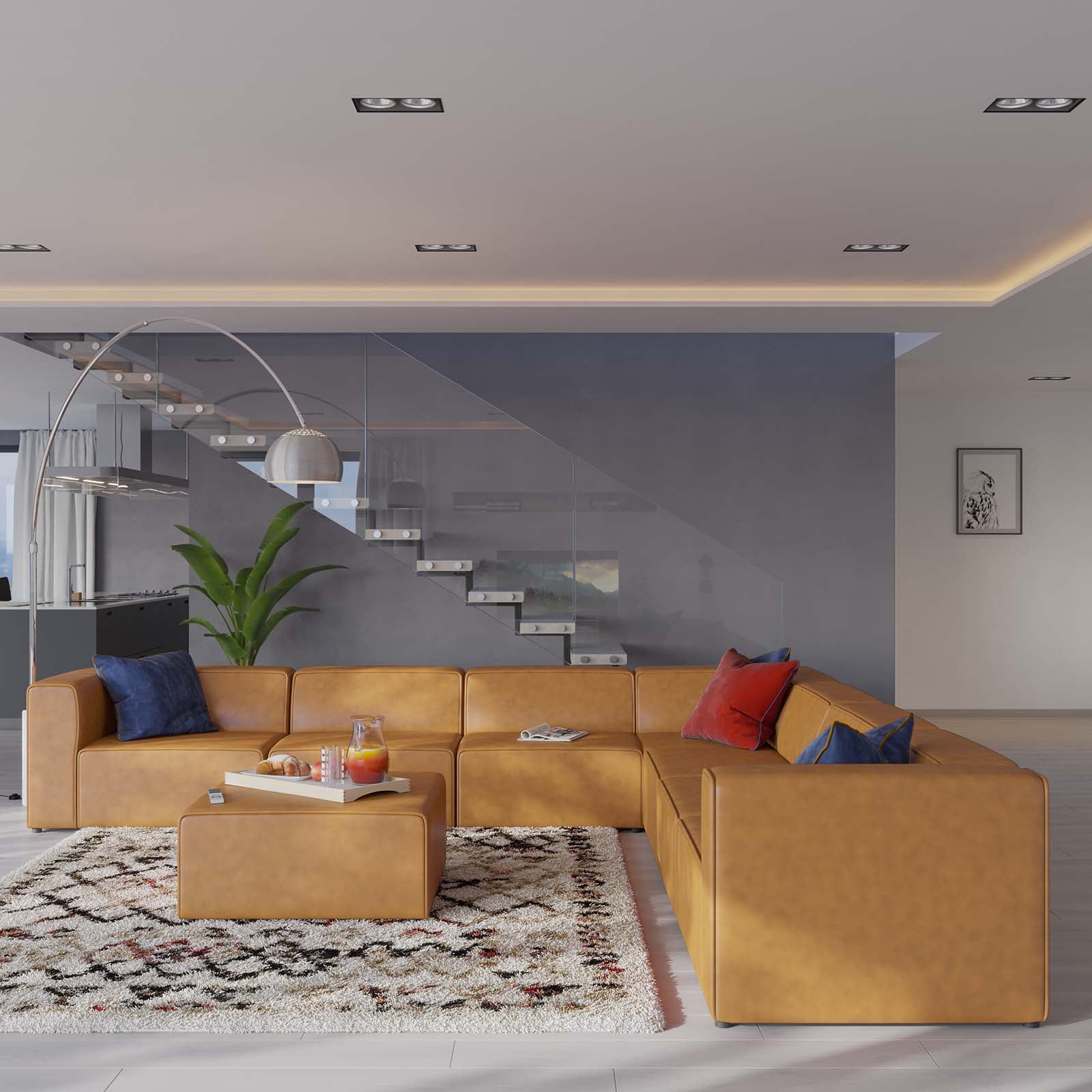Moda 7-Seater Corner Sectional + Ottoman in Tan Vegan Leather