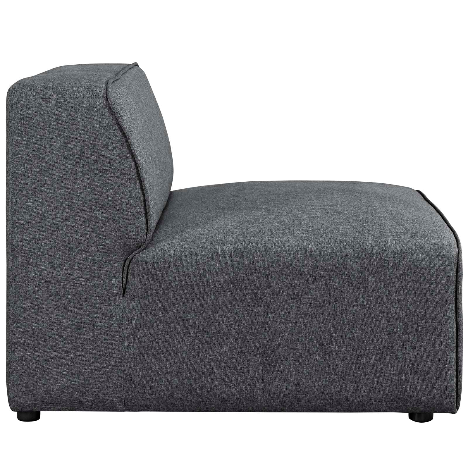 Kick back and relax with the Moda Armless Chair in Gray Woven. Designed to wash away the hindrances that obstruct visual space, Moda comes expansively designed with generous seating and dense foam padding that allows for just the right amount of giving. Moda easily positions according to the needs of the moment and features richly textured polyester with elegant piping and plastic legs for steady support. Host animated living or lounge room get-togethers with a modular sectional seating assortment perfect for contemporary modern décors.