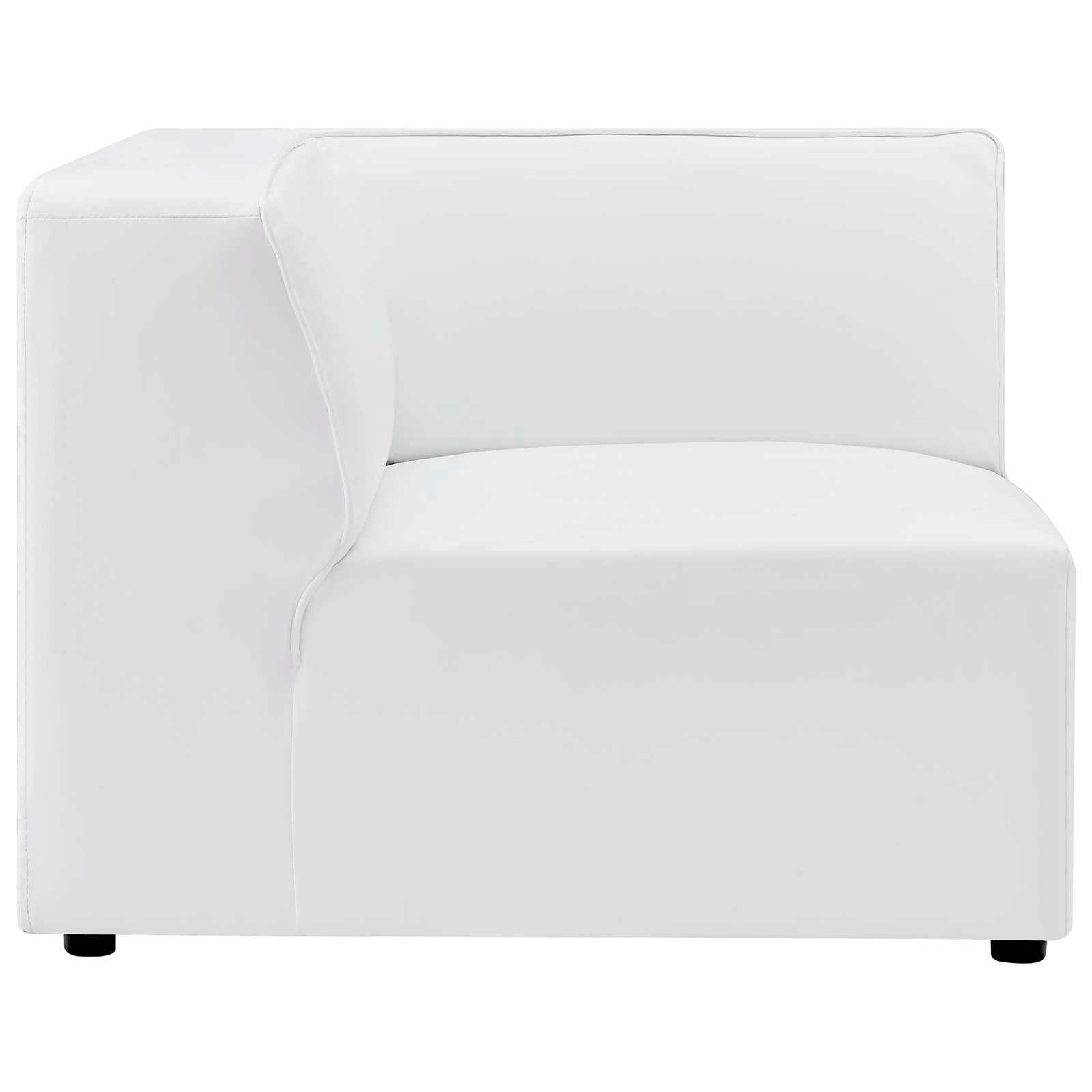 Kick back and relax with the Moda Corner Chair in White Vegan Leather. Designed to wash away the hindrances that obstruct visual space, Moda comes expansively designed with generous seating and dense foam padding that allows for just the right amount of giving. Moda easily positions according to the needs of the moment and features rich vegan leather upholstery with elegant piping and plastic legs for steady support. Host animated living or lounge room get-togethers with a modular sectional sofa seating assortment perfect for contemporary modern décors.
