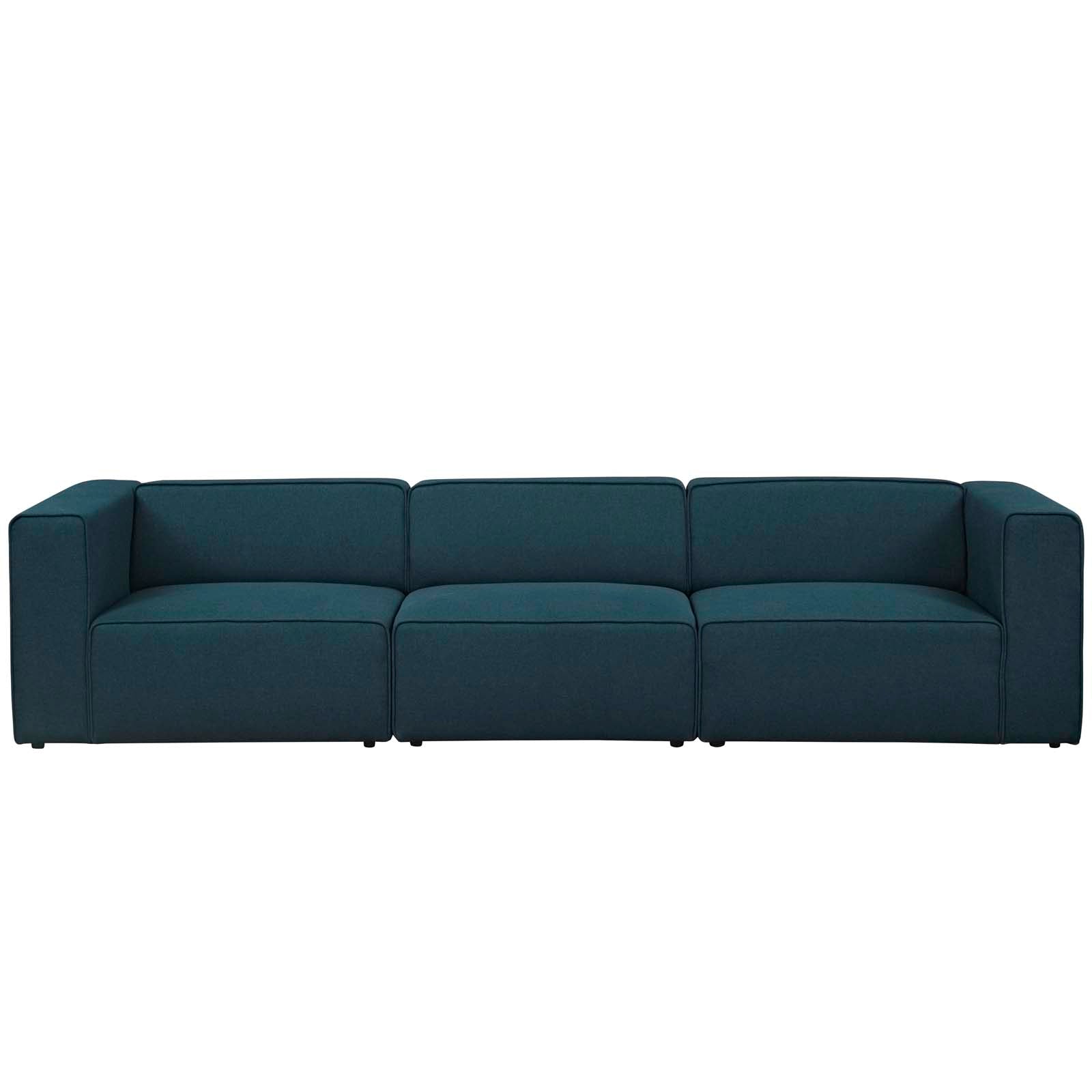 Kick back and relax with the Moda Sofa in Blue Woven. Designed to wash away the hindrances that obstruct visual space, Moda comes expansively designed with generous seating and dense foam padding that allows for just the right amount of give. Moda easily positions according to the needs of the moment and features richly textured polyester with elegant piping and plastic legs for steady support. Host animated living or lounge room get-togethers with a modular sectional seating assortment perfect for contemporary modern decors.