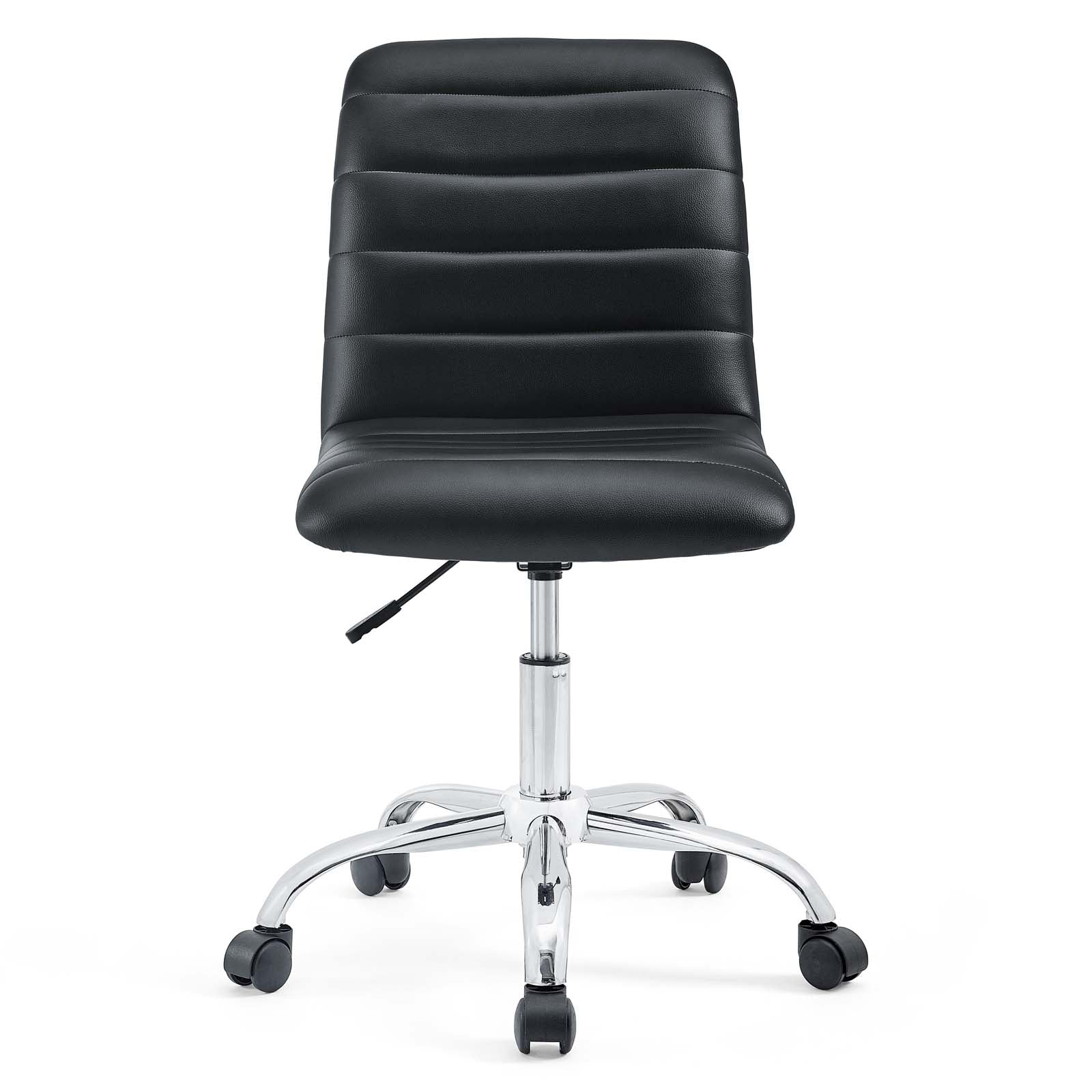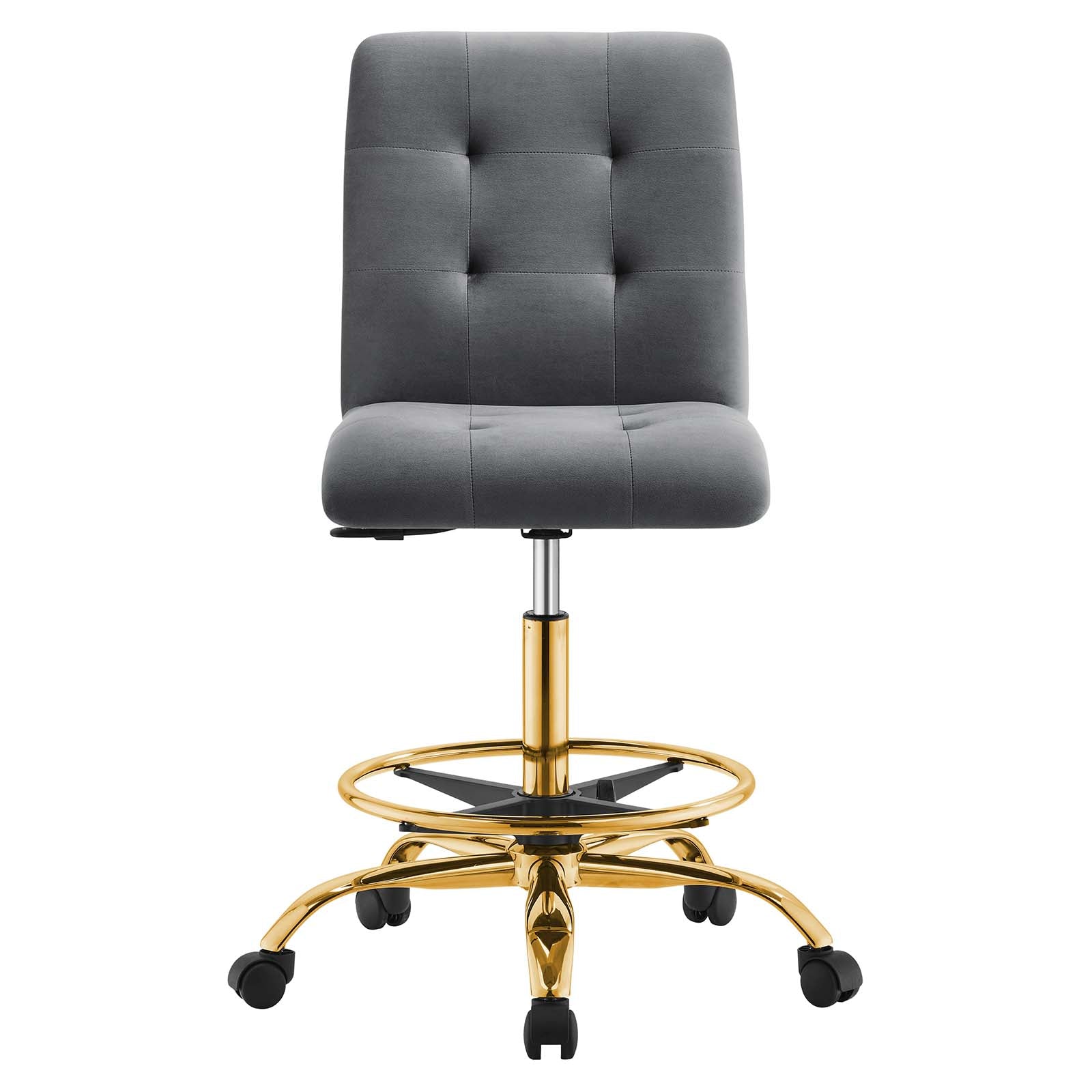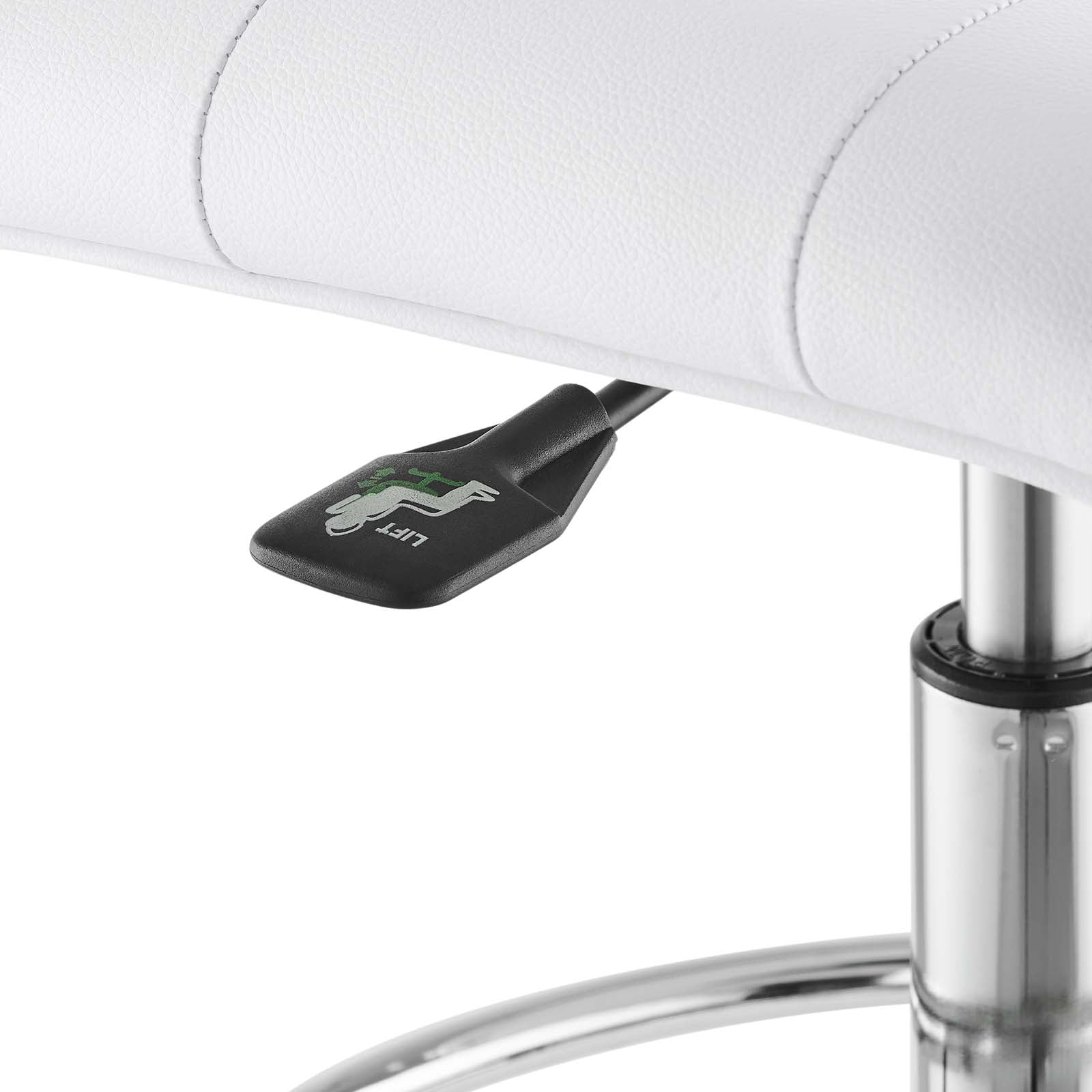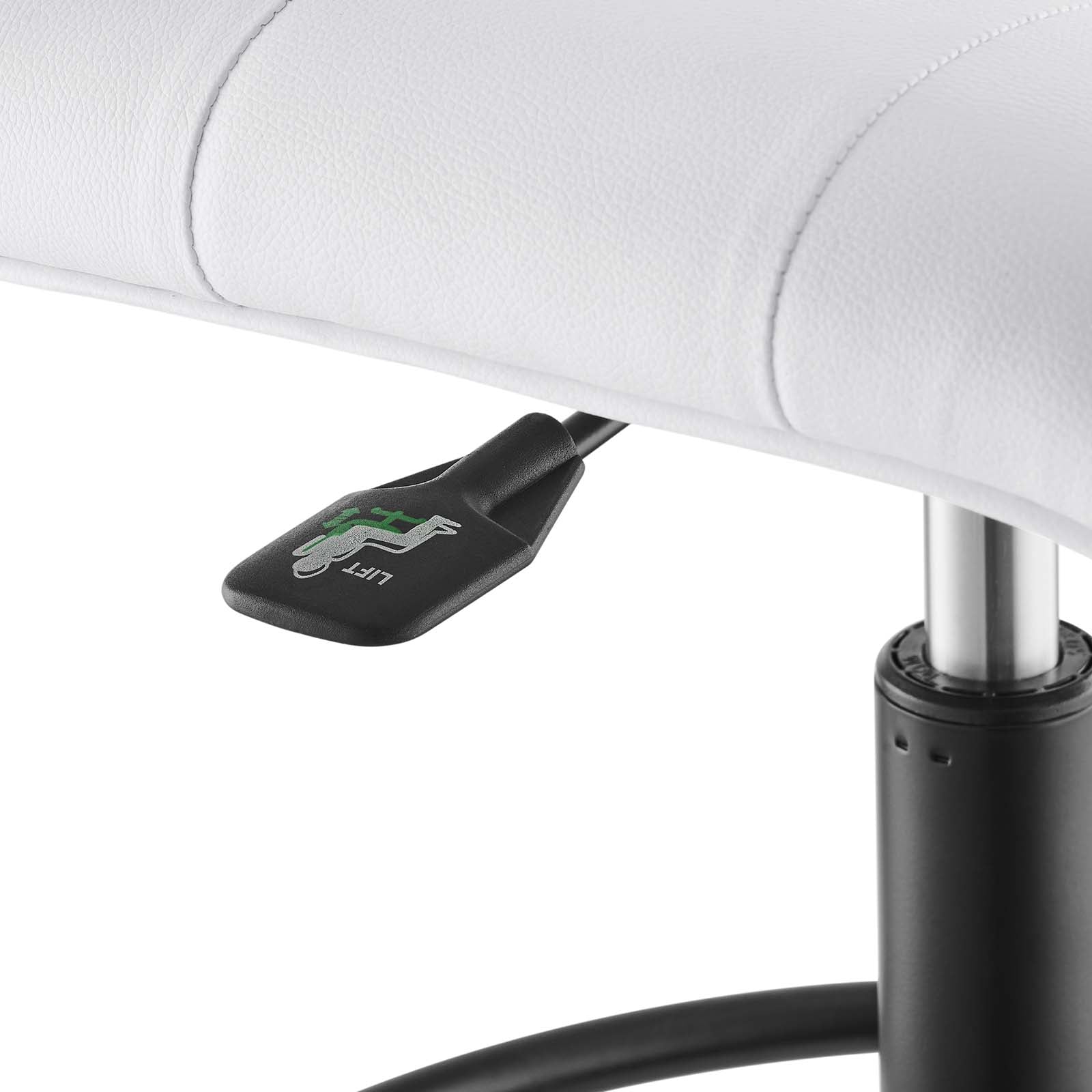 Focus on the task at hand while bringing modern style to your workspace with the Nomad Armless Drafting Chair. Outfitted with a matte black frame and five dual-wheel casters for easy mobility over hardwood or carpeted surfaces, this padded drafting stool is upholstered in durable vegan leather and covered in dense foam for added comfort. An ergonomic choice for workstations, this vegan leather drafting-height office chair features a mid-back design, channel tufting, and fine stitching throughout. This drafting chair is fully height adjustable with a 360-degree swivel and its drafting-height makes it suitable for standing desks, drafting tables, reception desks, and more. Assembly required. Weight Capacity: 287 lbs.