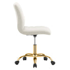 Focus on the task at hand while bringing glam deco style to your workspace with the Nomad Armless Office Chair. Outfitted with a polished gold frame and five dual-wheel casters for easy mobility over hardwood or carpeted surfaces, this padded office chair is upholstered in stain-resistant performance velvet and covered in dense foam for added comfort. An ergonomic choice for conference rooms and workstations, this velvet office chair features a mid-back design, channel tufting, and fine stitching throughout. This office chair is fully height adjustable with a 360-degree swivel. Assembly required. Weight Capacity: 287 lbs.