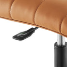 Focus on the task at hand while bringing modern style to your workspace with the Nomad Armless Office Chair. Outfitted with a matte black frame and five dual-wheel casters for easy mobility over hardwood or carpeted surfaces, this padded office chair is upholstered in durably vegan leather and covered in dense foam for added comfort. An ergonomic choice for conference rooms and workstations, this vegan leather office chair features a mid-back design, channel tufting, and fine stitching throughout. This office chair is fully height adjustable with a 360-degree swivel. Assembly required. Weight Capacity: 287 lbs.