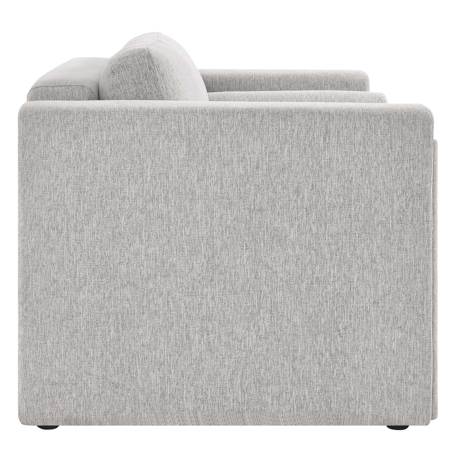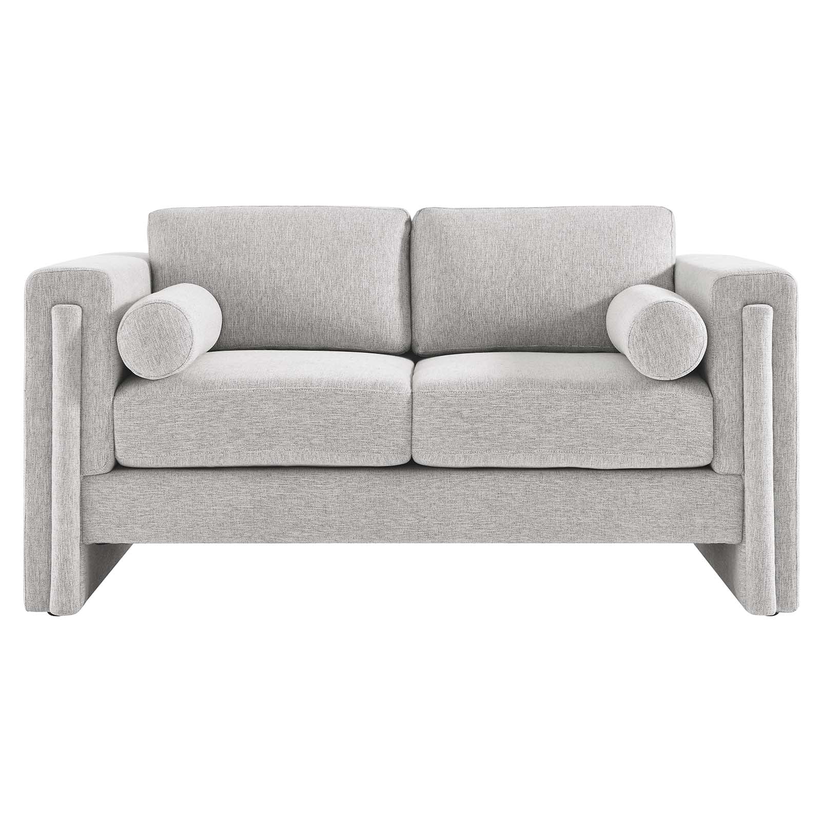 Indulge in the epitome of modern luxury and sophistication with the Nova Loveseat. Crafted with a sturdy wood and plywood frame, this loveseat exudes modern elegance with its sleek lines, tailored silhouette, and bolster pillows. The adjustable non-marking foot pads protect your flooring while providing sturdy stability. Sink into cozy comfort with the dense foam padding, individualized pocket spring support, and stain-resistant heathered weave polyester fabric upholstery on this two-seater sofa. The cushions and cushion covers are zippered and removable. Enjoy unmatched support with the pocket coil springs that offer a premium seating experience. Assembly is required with easy to follow assembly instructions. Weight Capacity: 660 lbs.