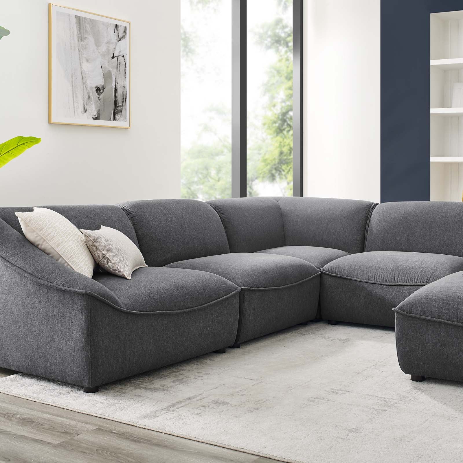 Rove 5-Seater Corner Sectional + Ottoman in Charcoal Woven