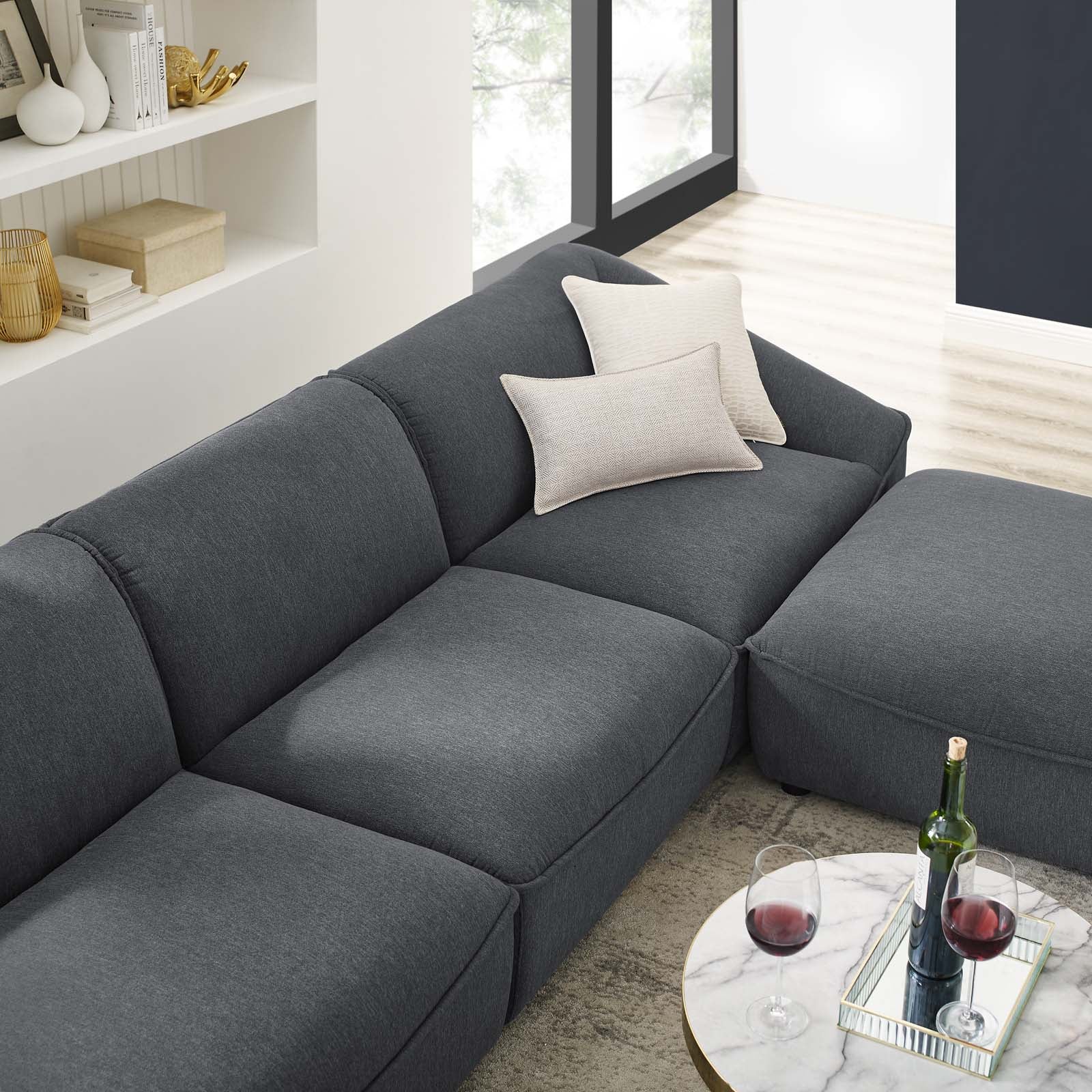 Indulge in cozy relaxation in the comfort of your own home with the Rove Sofa Sectional. A casual design accented with French piping details, this three-seater sofa and ottoman set features dense foam padding, soft polyester upholstery and a pocket coil spring system to offer a premium seating experience. Solidly constructed with solid wood and plywood, this upholstered sofa rests atop sturdy rubberwood legs with secure connectors between modular pieces. Create a custom living room or lounge area with the Rove Living Room Furniture Collection.