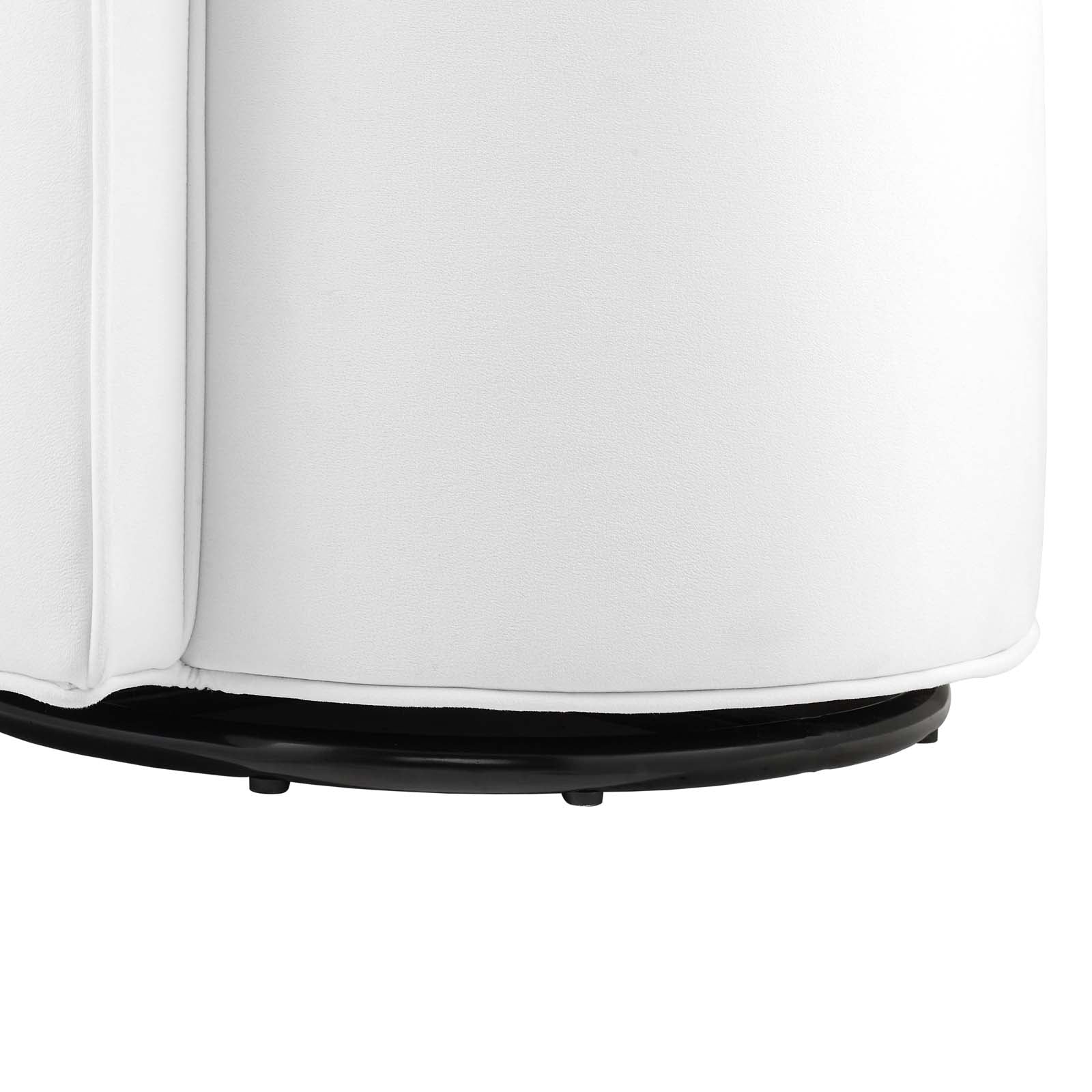 Stunning from every angle, the Twine Performance Velvet Swivel Chair brings luxe style and tailored elegance to your living room, entryway, bedroom, office, or other seating area. This accent chair makes a statement with sleek lines, French piping trim, and subtle channel tufting along the backrest. Featuring dense foam padding, this swivel chair is upholstered in soft, stain-resistant performance velvet offering a premium seating experience. This accent chair rests on a matte black iron base that features non-marking foot caps to protect your flooring and swivels 360º to survey your Dazeings. Weight Capacity: 330 lbs.
