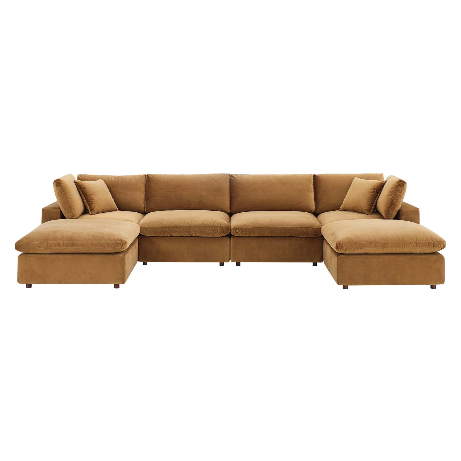 Umbra 4-Seater U-Sectional in Cognac Velvet
