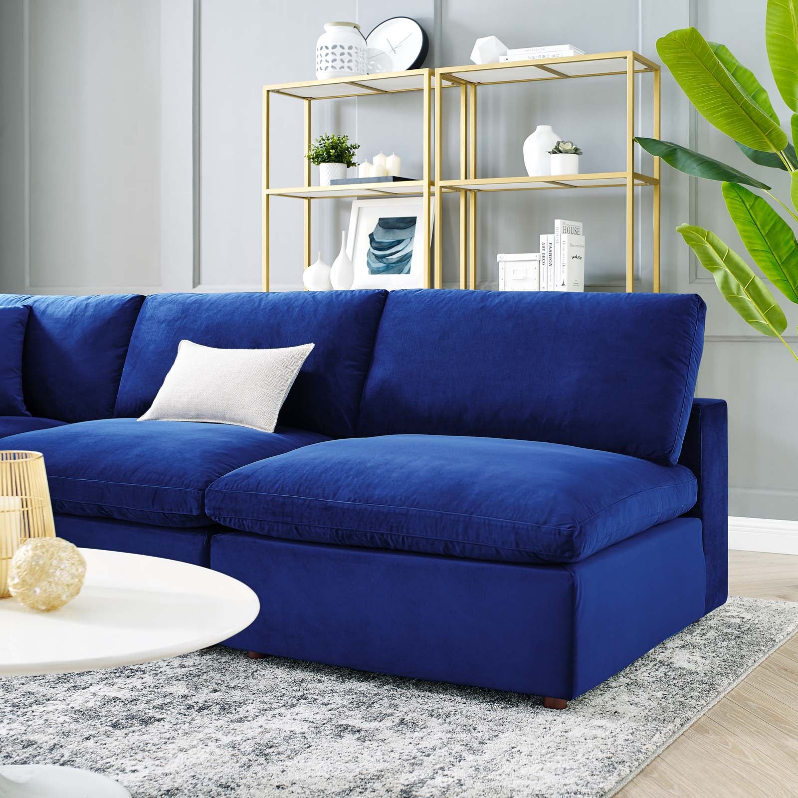 Umbra 5-Seater Open Ends Corner Sectional in Navy Velvet