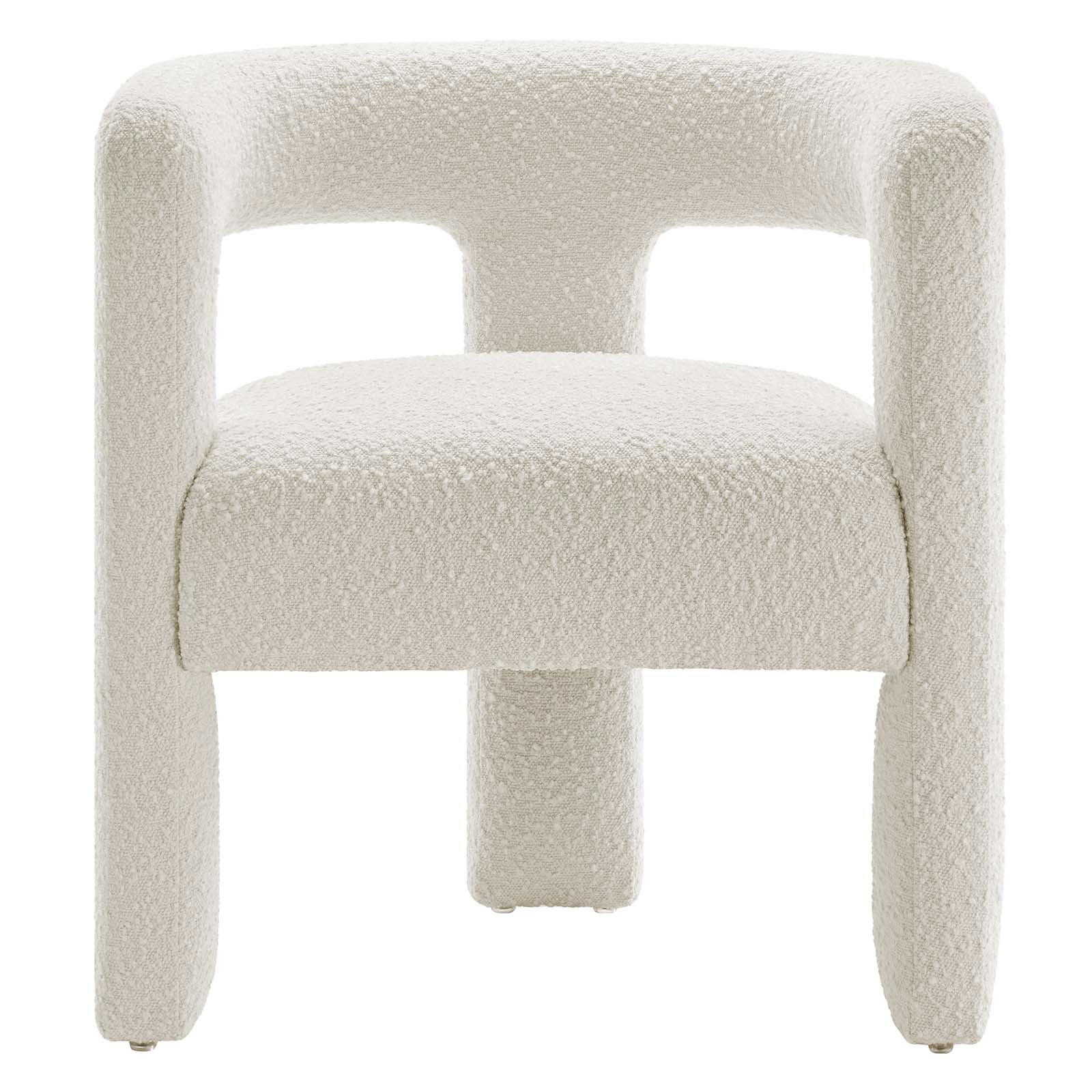 Experience unmatched comfort and sleek modernity with the Xanadu Boucle Armchair. Its progressive design and rounded open profile make a chic statement in any space. The boucle fabric adds a delightful touch with its charming nubby texture. Crafted with a sturdy wood frame, sinuous spring support, and dense foam padding, this accent chair offers premium comfort and durability. Non-marking foot glides protect your floors. Elevate your space with the Xanadu Boucle Armchair—where modern luxury meets everyday elegance. Weight Capacity: 330 lbs.