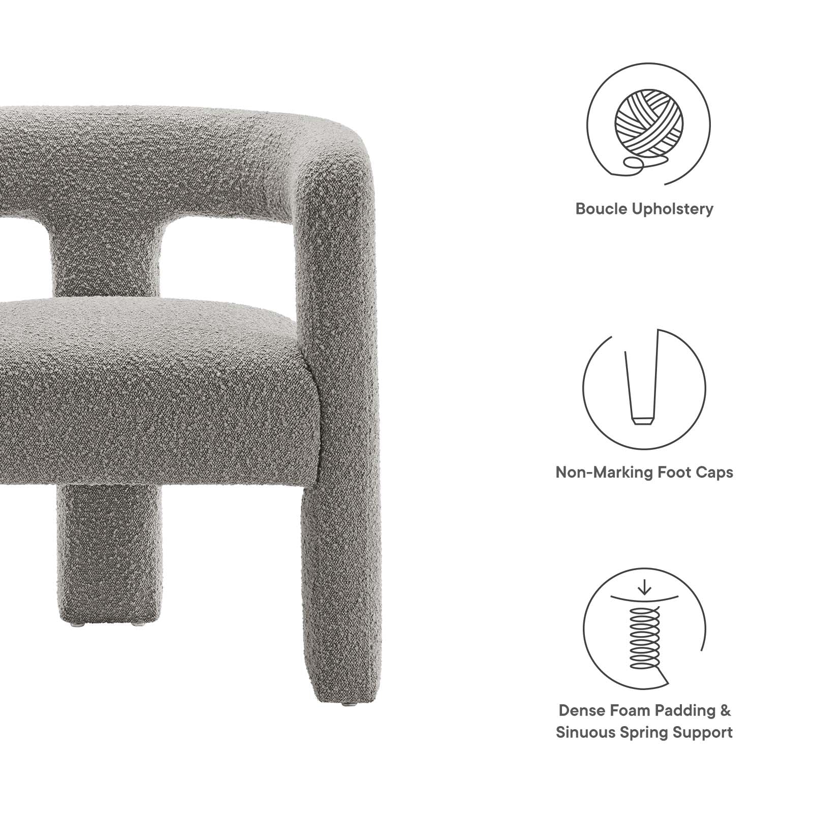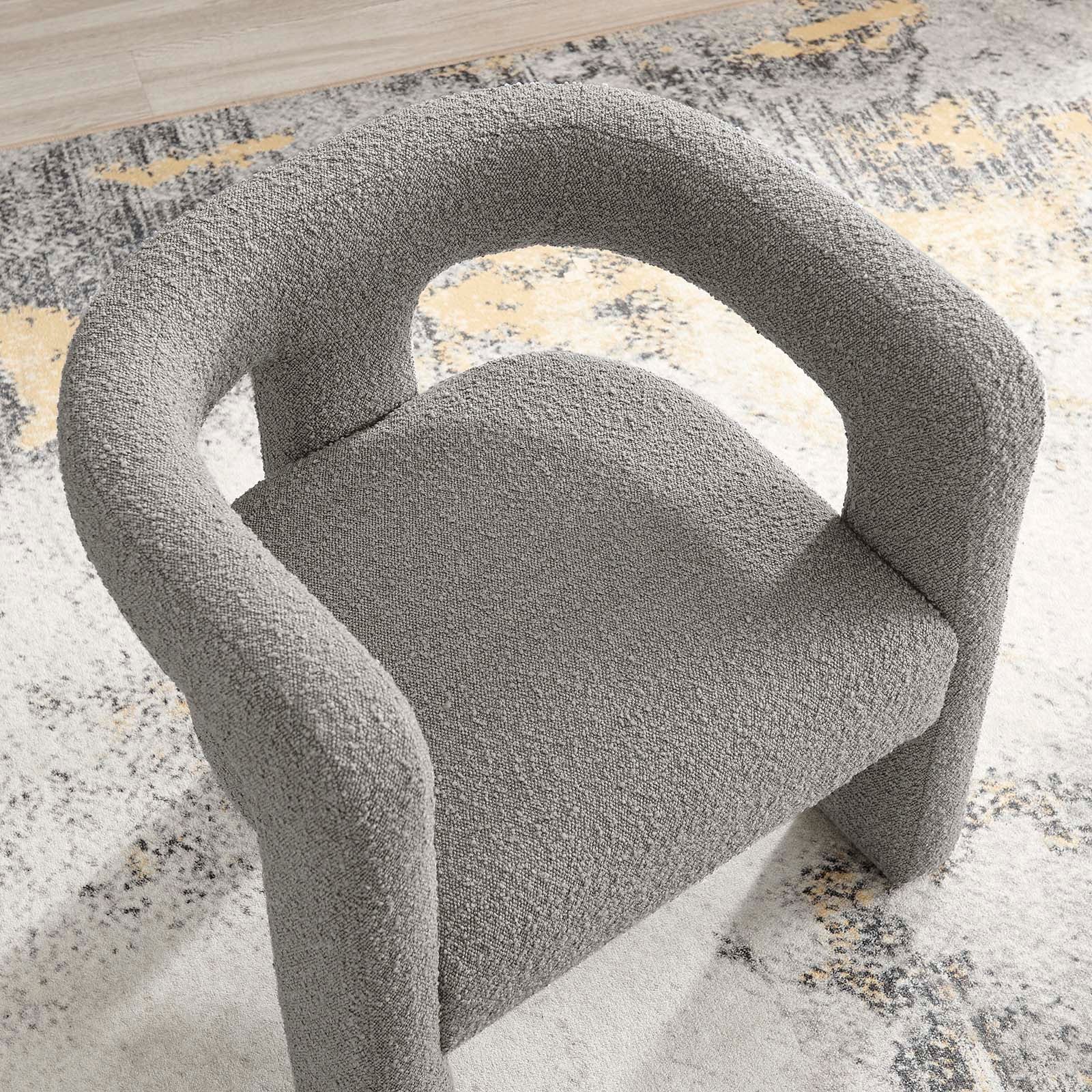 Experience unmatched comfort and sleek modernity with the Xanadu Boucle Armchair. Its progressive design and rounded open profile make a chic statement in any space. The boucle fabric adds a delightful touch with its charming nubby texture. Crafted with a sturdy wood frame, sinuous spring support, and dense foam padding, this accent chair offers premium comfort and durability. Non-marking foot glides protect your floors. Elevate your space with the Xanadu Boucle Armchair—where modern luxury meets everyday elegance. Weight Capacity: 330 lbs.