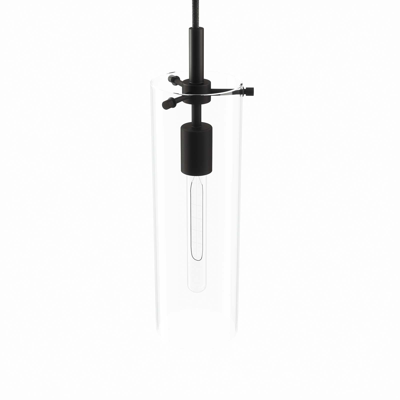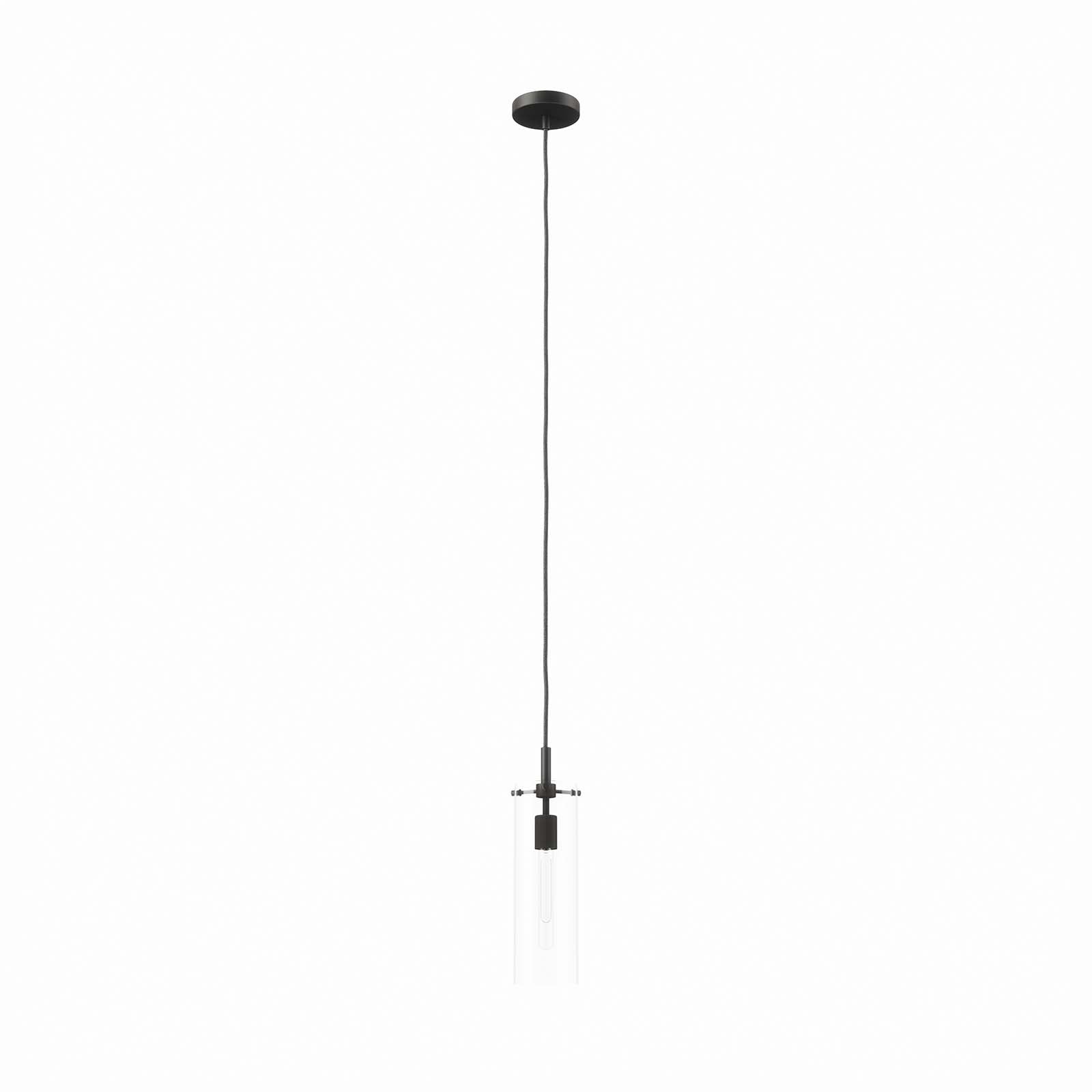 Cover your walls with ambient light with the Yara 1-Light Pendant Light. A modern update to the dining room, kitchen, entryway, hallway, bedroom, bathroom, or other living space, this hanging light features a single bulb encased in a clear glass cylinder shade. Compatible with sloped ceilings, this pendant light is suspended by a ceiling canopy and an adjustable fabric cable to accomodate a range of ceiling heights. This light fixture requires one E26 bulb 60W max or LED equivalent (not included). This pendant light is damp rated for use in the bathroom. Professional installation required.