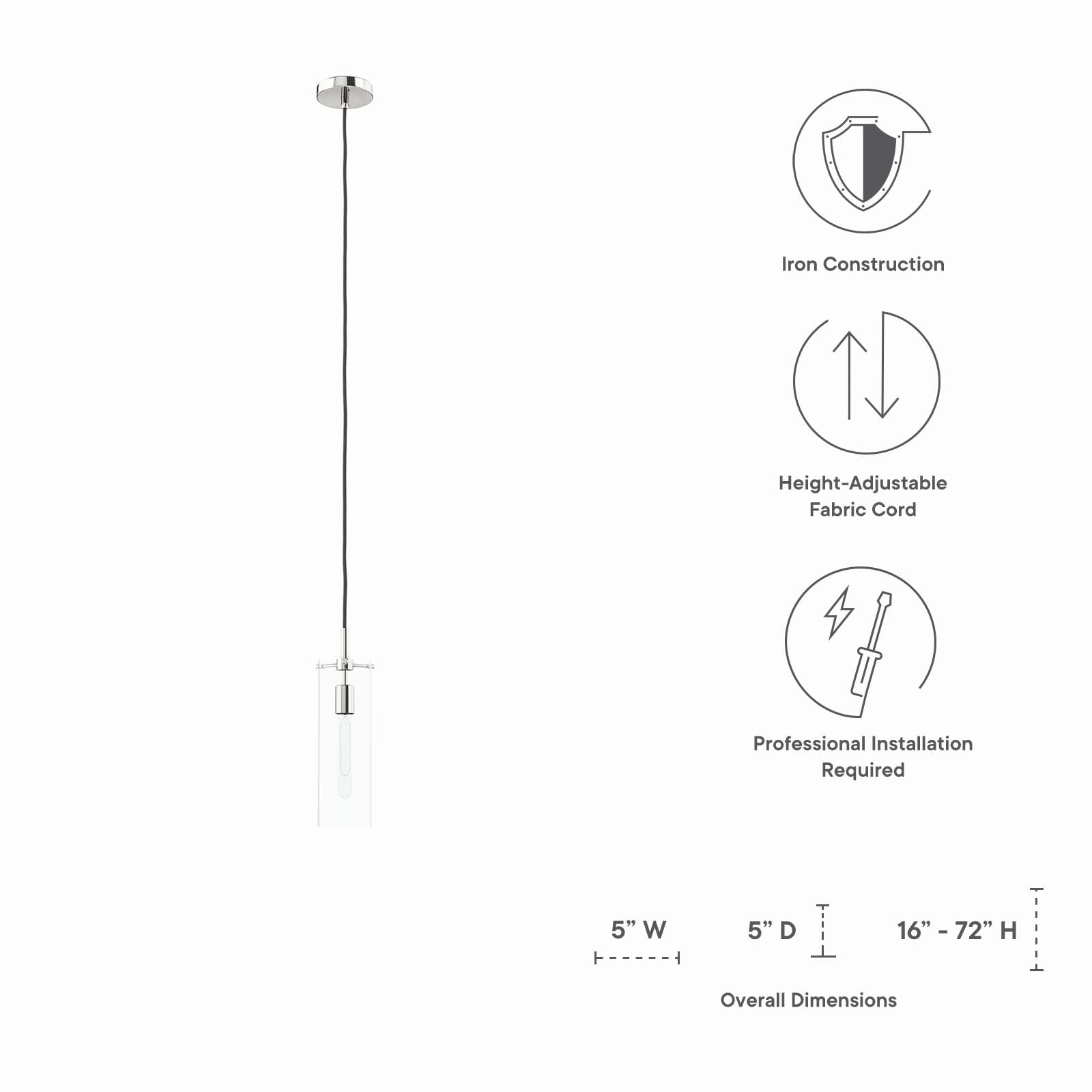 Cover your walls with ambient light with the Yara 1-Light Pendant Light. A modern update to the dining room, kitchen, entryway, hallway, bedroom, bathroom, or other living space, this hanging light features a single bulb encased in a clear glass cylinder shade. Compatible with sloped ceilings, this pendant light is suspended by a ceiling canopy and an adjustable fabric cable to accomodate a range of ceiling heights. This light fixture requires one E26 bulb 60W max or LED equivalent (not included). This pendant light is damp rated for use in the bathroom. Professional installation required.