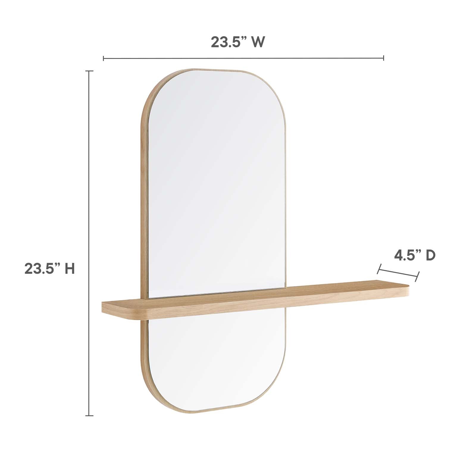 The Zen Wall Mirror in Oak adds an air of sophistication to any space. A good blend of contemporary and traditional styles, this rectangular mirror features rounded edges and a split design, making it the ideal decorative accent for an entryway or mudroom but also your living area, bedroom, bathroom, or vanity space. Crafted from mindi wood and particleboard with a wood grain laminate, this mirror is designed to last for years and is sure to add a touch of elegance to any interior. An added shelf is great for storing small items such as keys, personal care items, and other small accessories. With only minimal assembly required, this wall mirror is sure to be a beautiful addition to any home.
